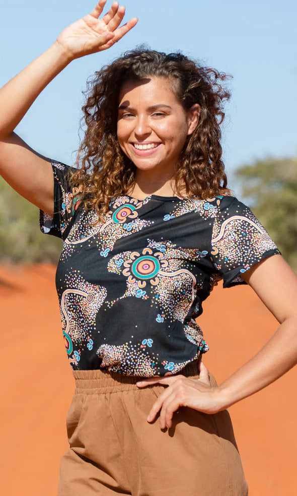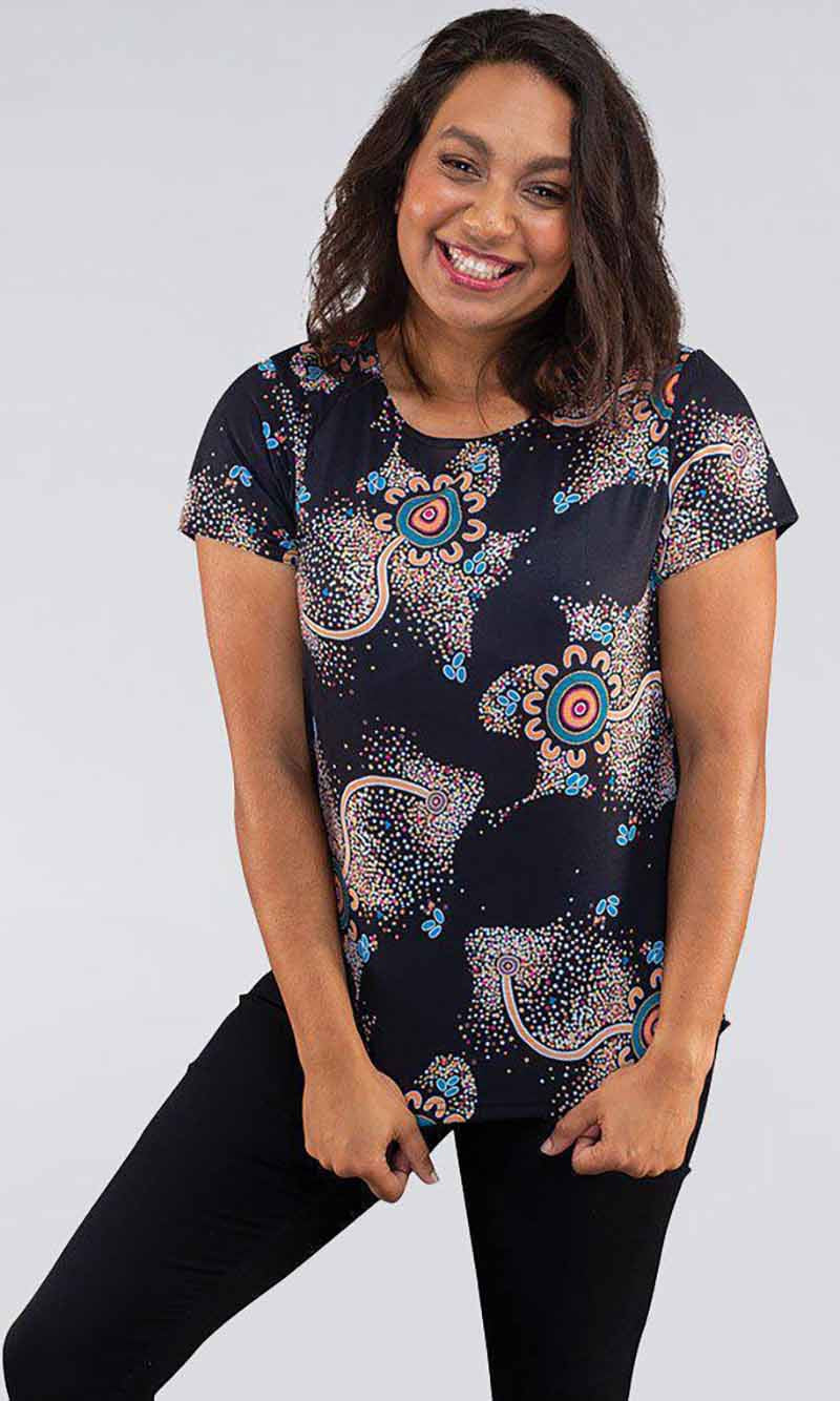 This top is the perfect level of effortless and casual! Featuring bold, bright prints inspired by this year's theme 'Always Was, Always Will Be', this look can carry you throughout the seasons.