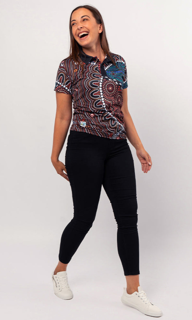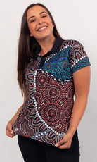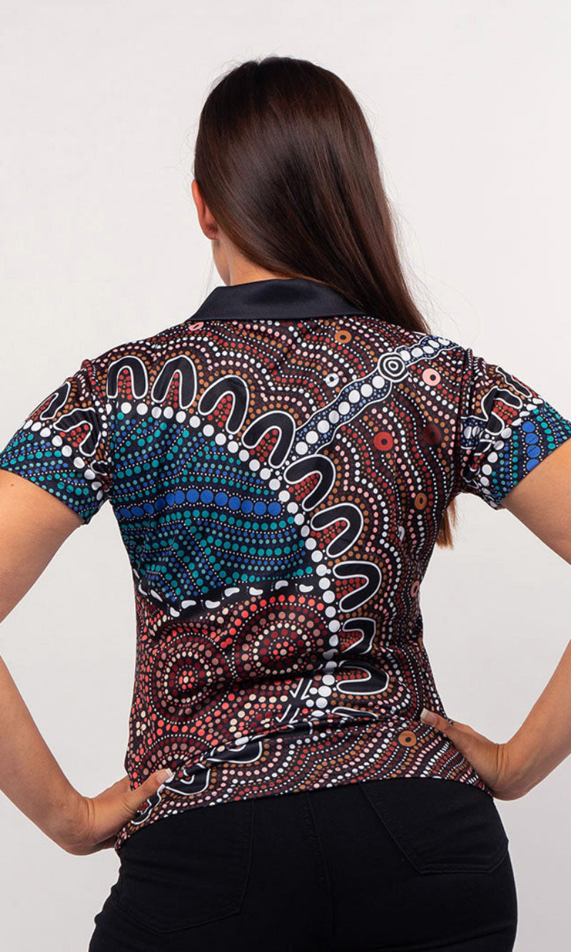 Aboriginal Art Ladies Fitted Polo Heal Our Nura