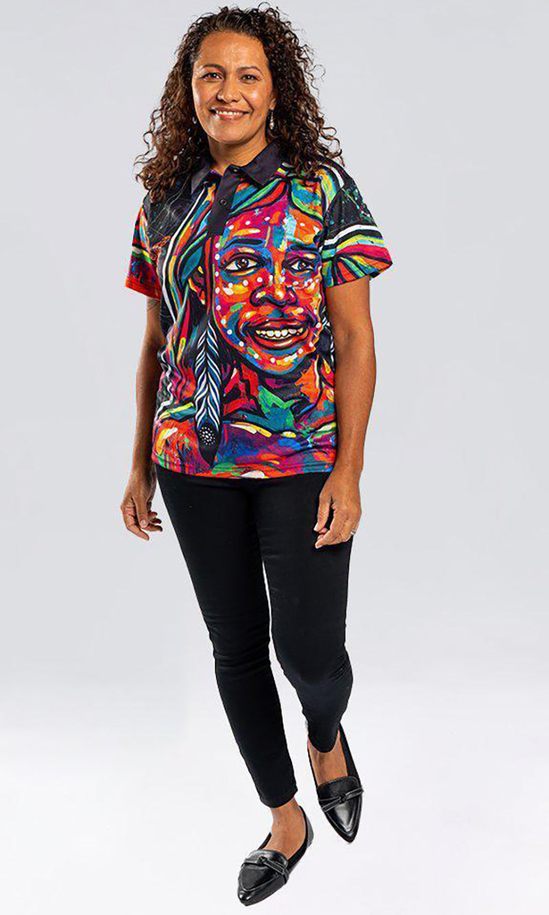 Aboriginal Art Ladies Fitted Polo Nature Girl Spirit