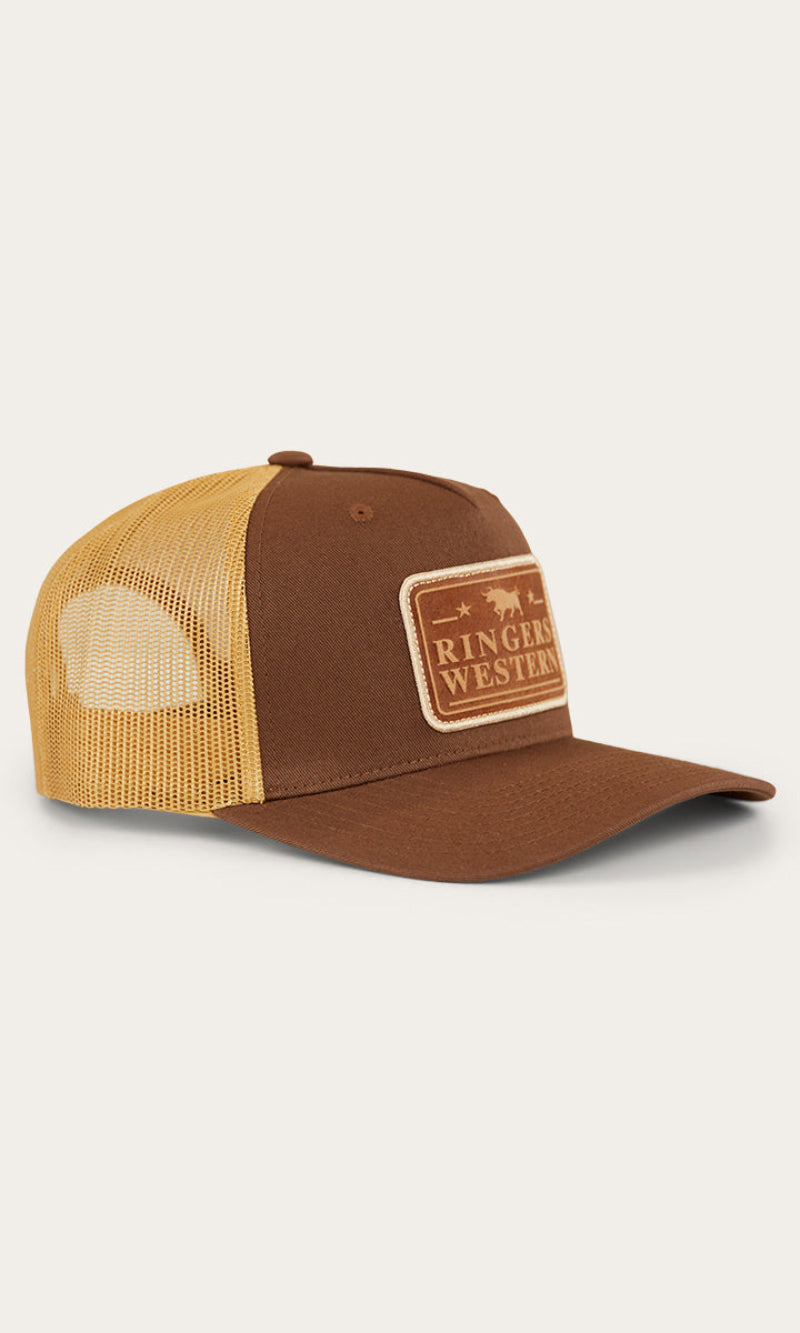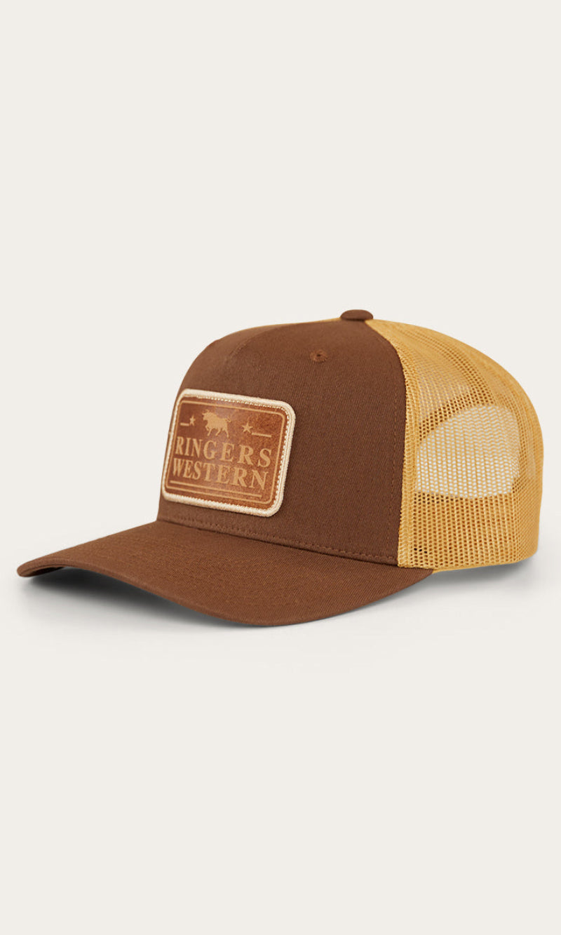 The Awol trucker cap is structured using cotton twill in the same five panel design you all know and love. The front peak will keep your eyes protected from the sun whilst the mesh back panel allows for extra ventilation on those warmer days. Awol features a Ringers Western embossed logo patch on the front and a snap back closure for an adjustable fit.