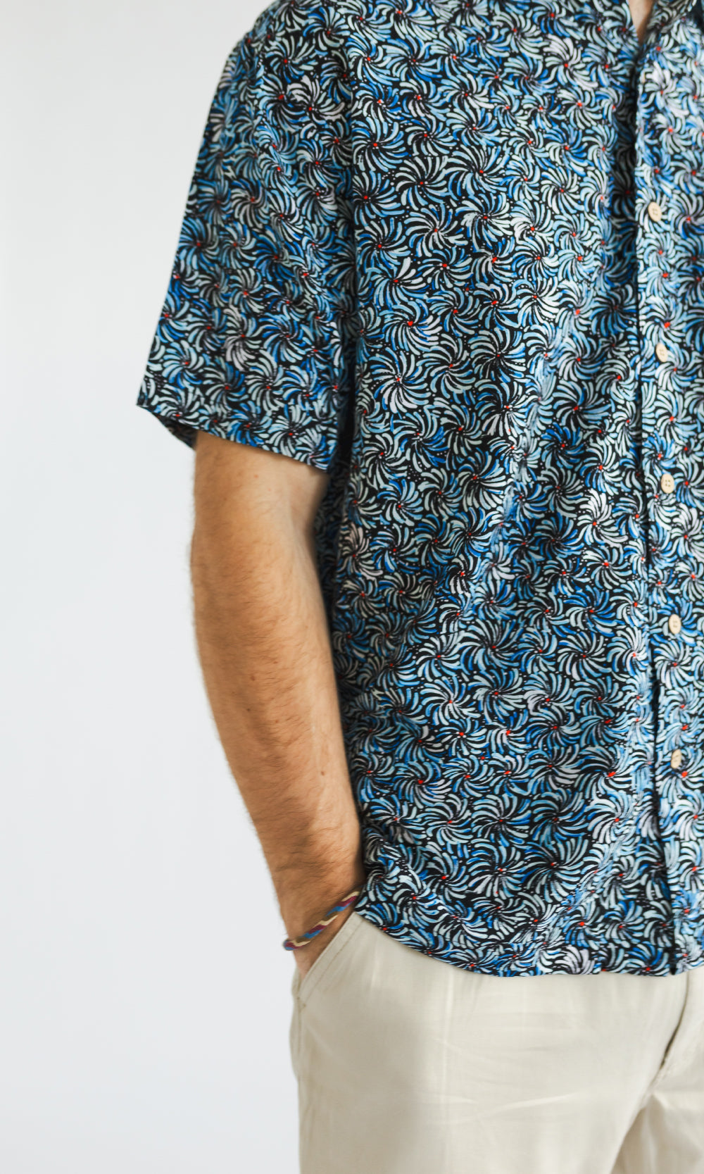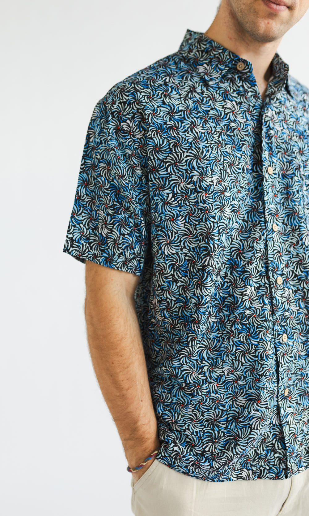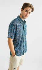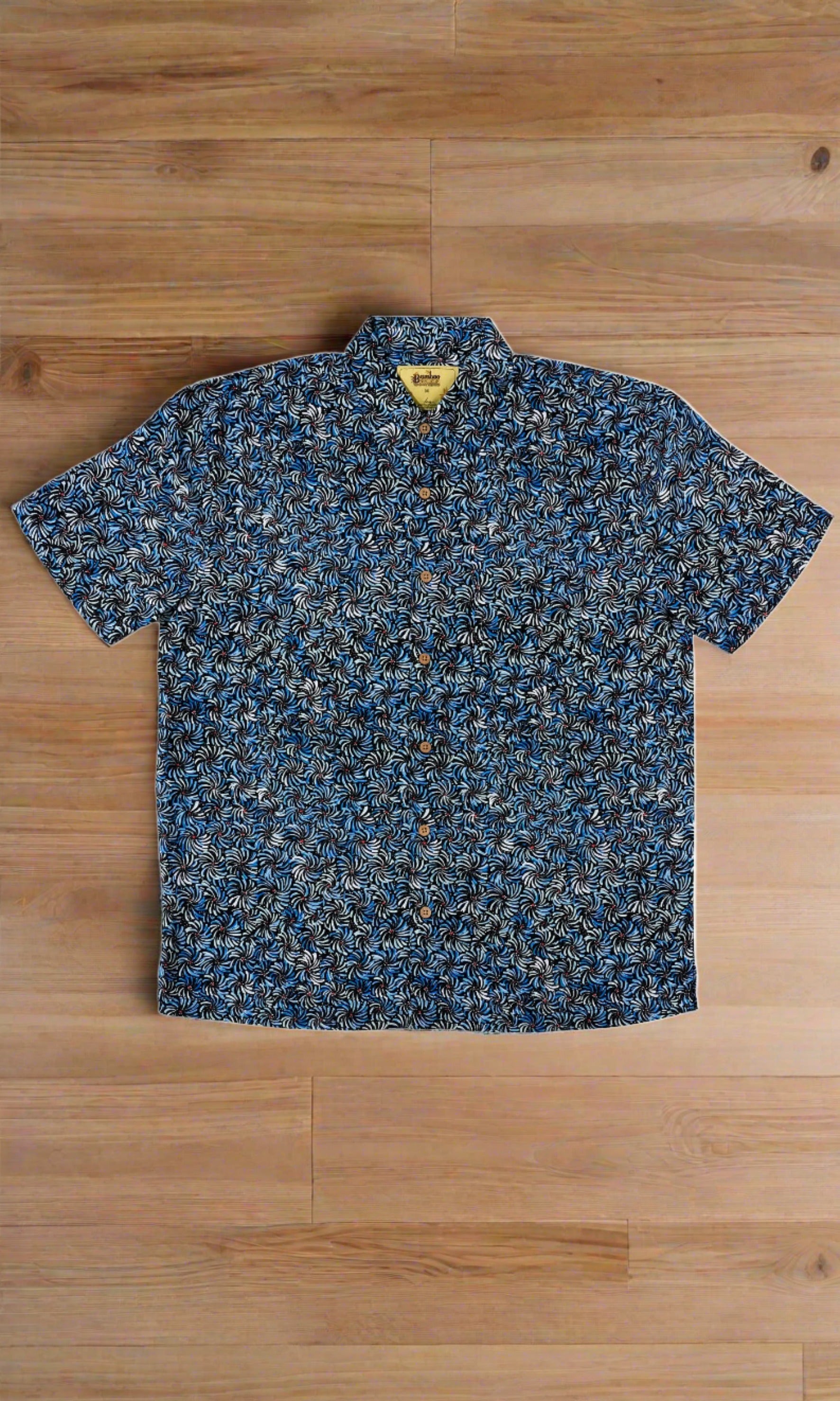 Bamboo Men's Shirt Aboriginal Art Bush Banana Blue