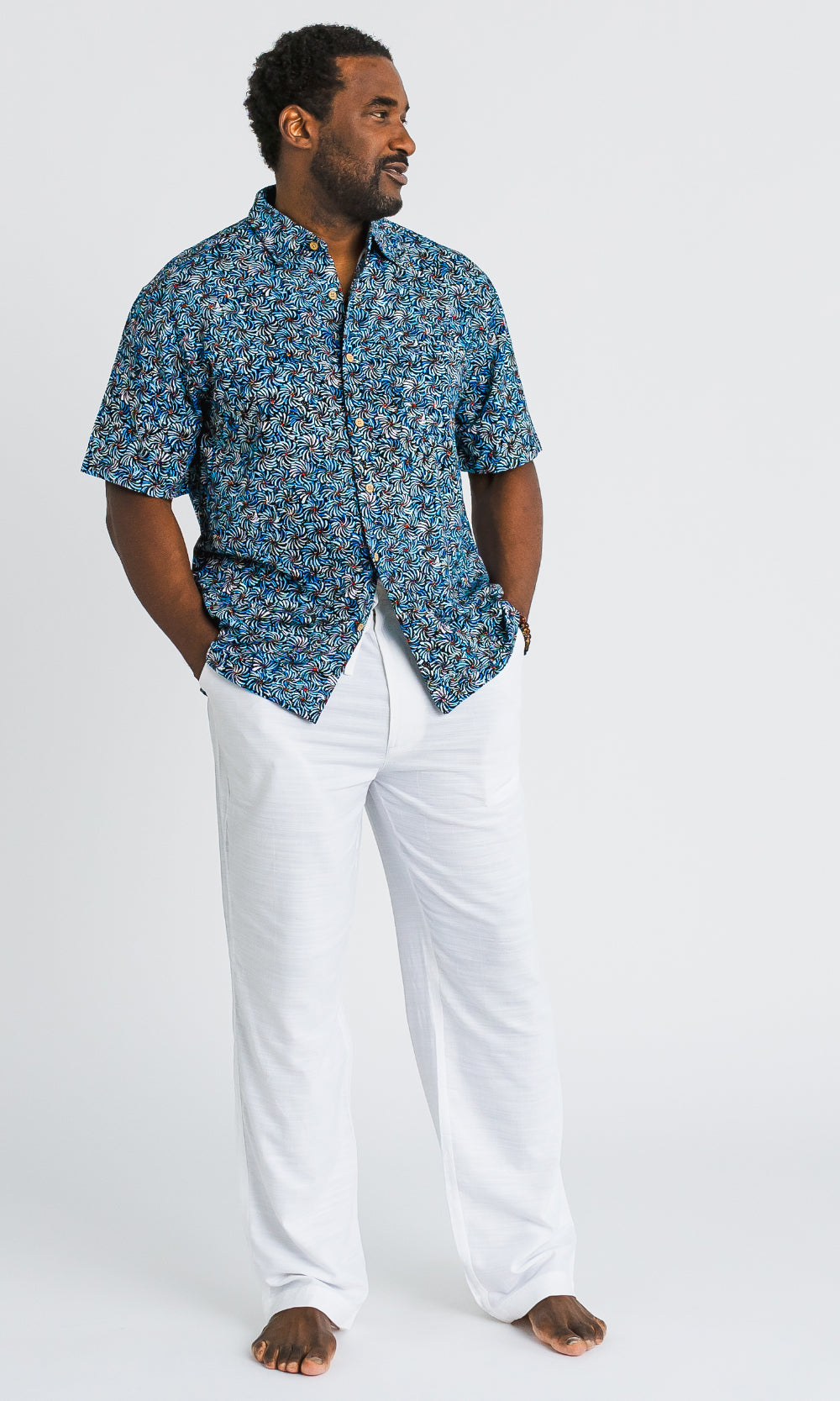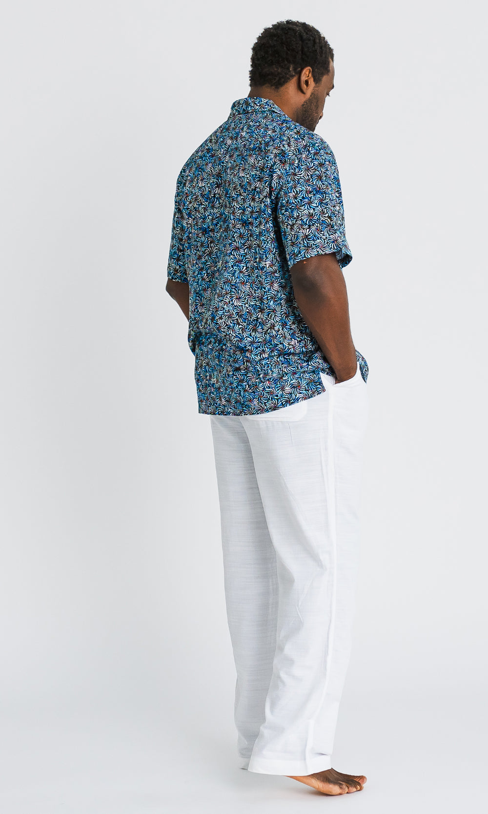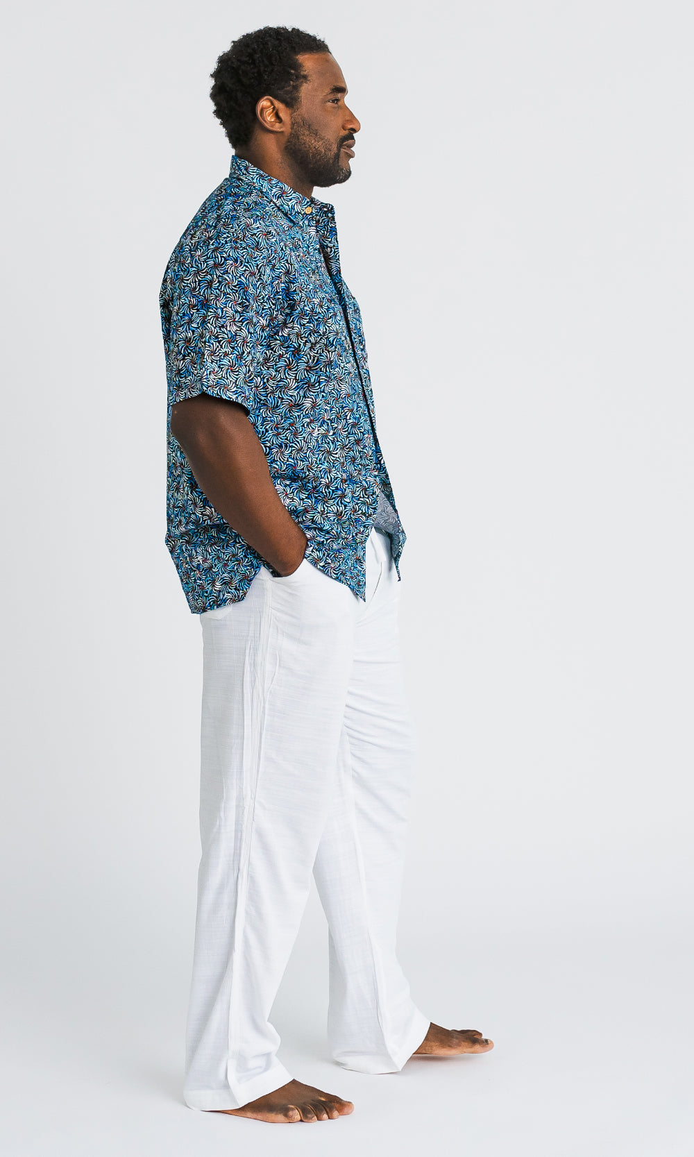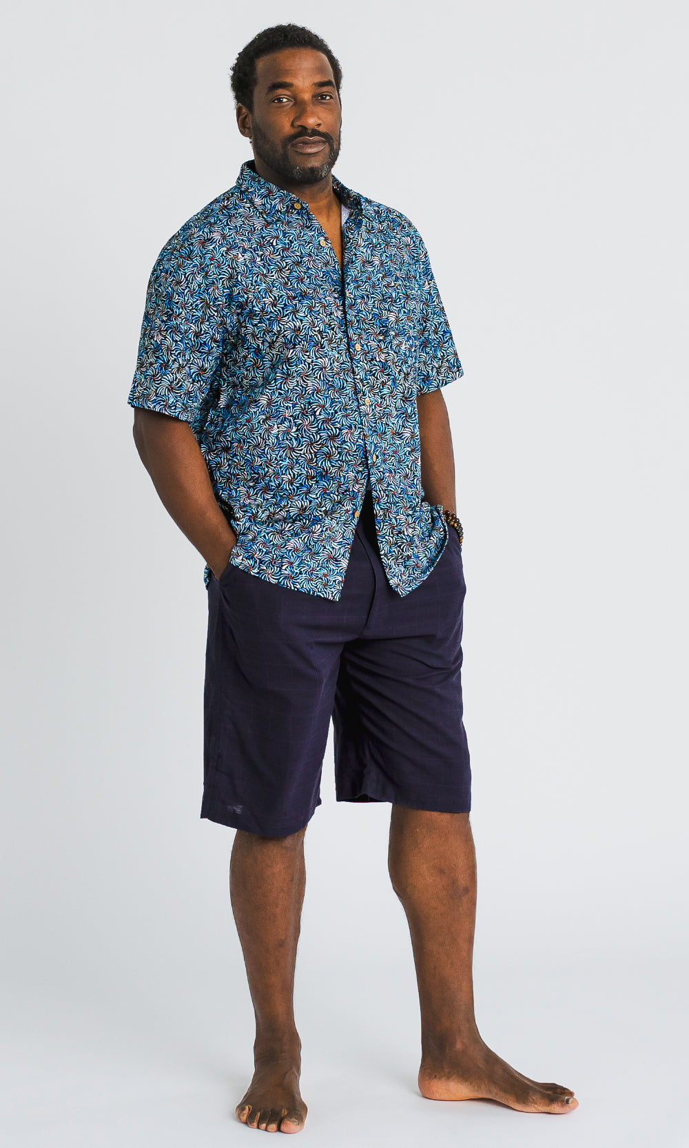 Bamboo Men's Shirt Aboriginal Art Bush Banana Blue
