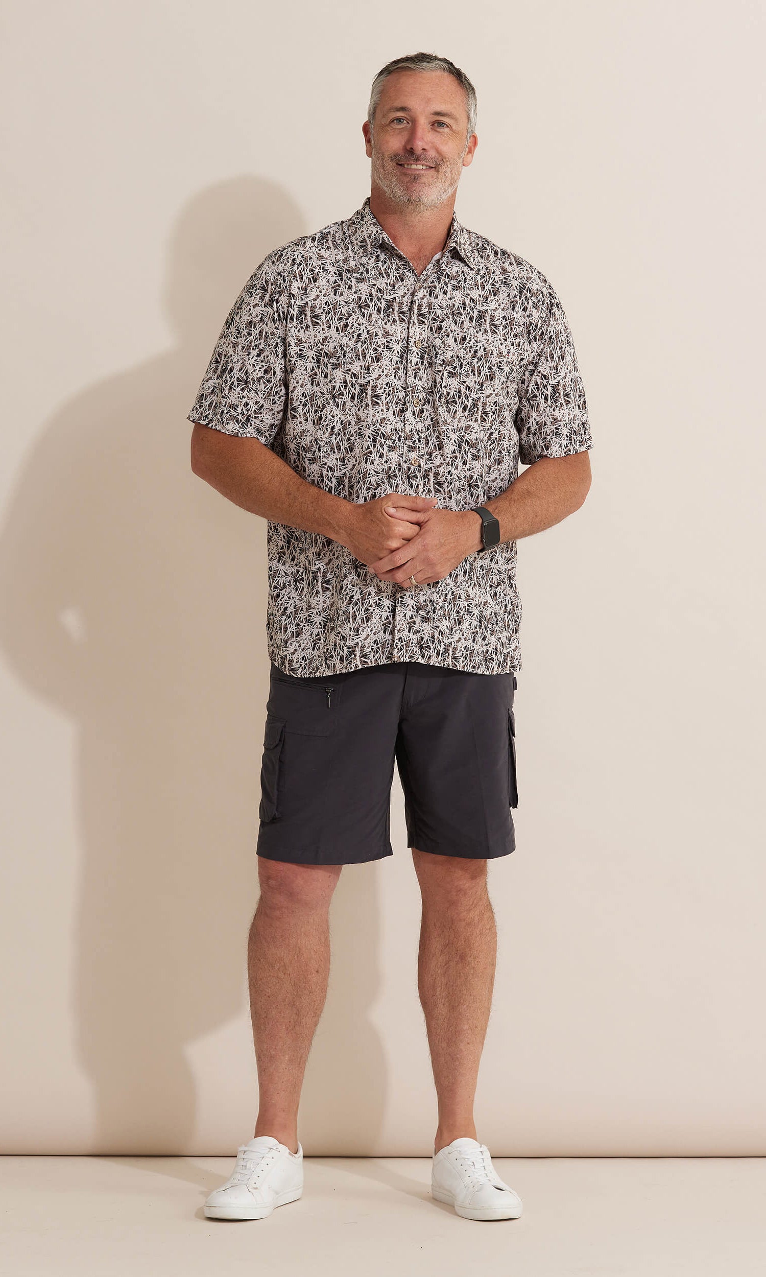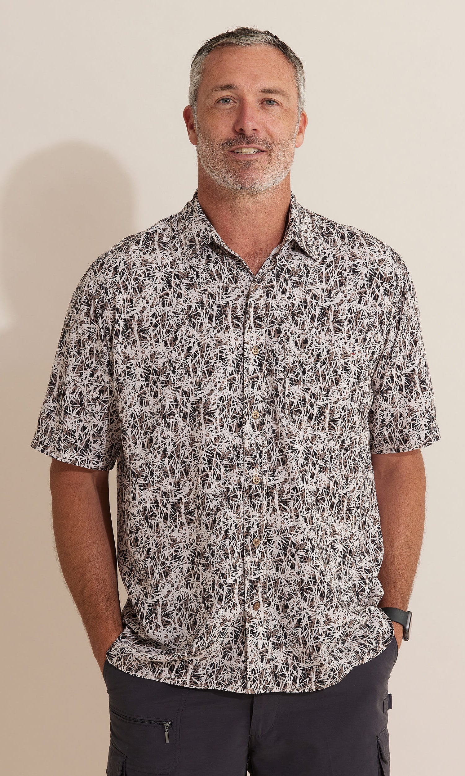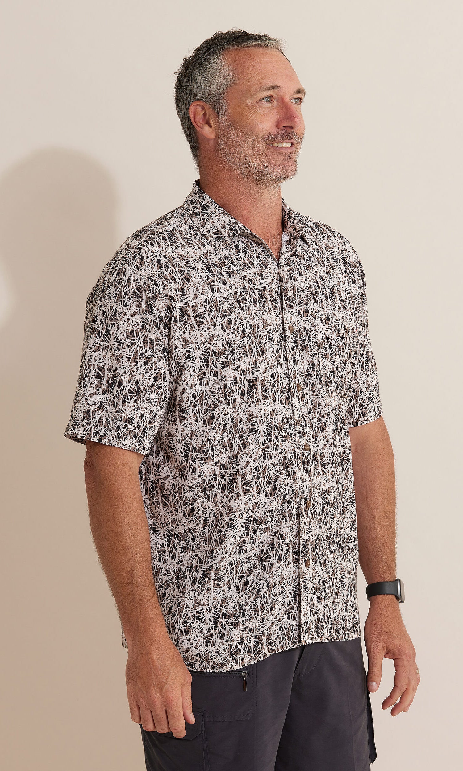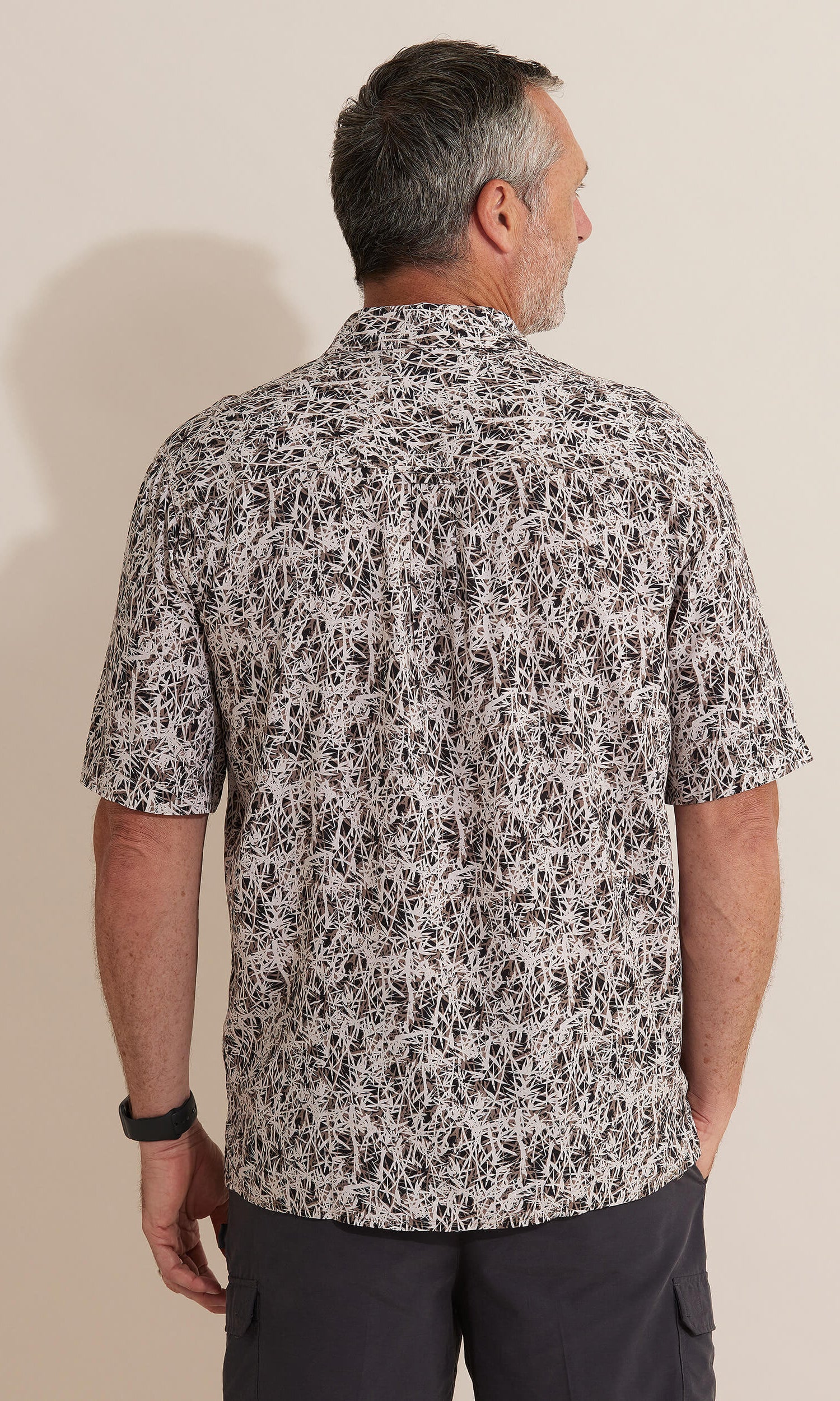 If you only buy one printed shirt this season it should be this 100% bamboo shirt! The neutral bamboo leaf print is no fuss but always stylish.