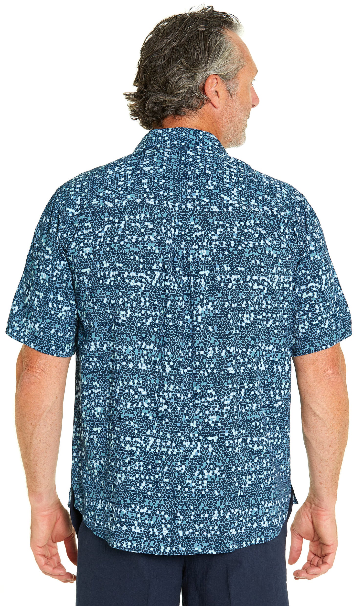 Add an eco-friendly yet stylish touch to your wardrobe with the Wael Bamboo Shirt. It is crafted from 100% bamboo which creates a super-soft feel whilst also being completely natural and biodegradable. It is durable, stylish and would look great with either jeans or shorts. This Ink based geometric print features subtle pops of vanilla, succulent, and sky blue. The 100% bamboo fabrication will keep you cool & carefree all summer