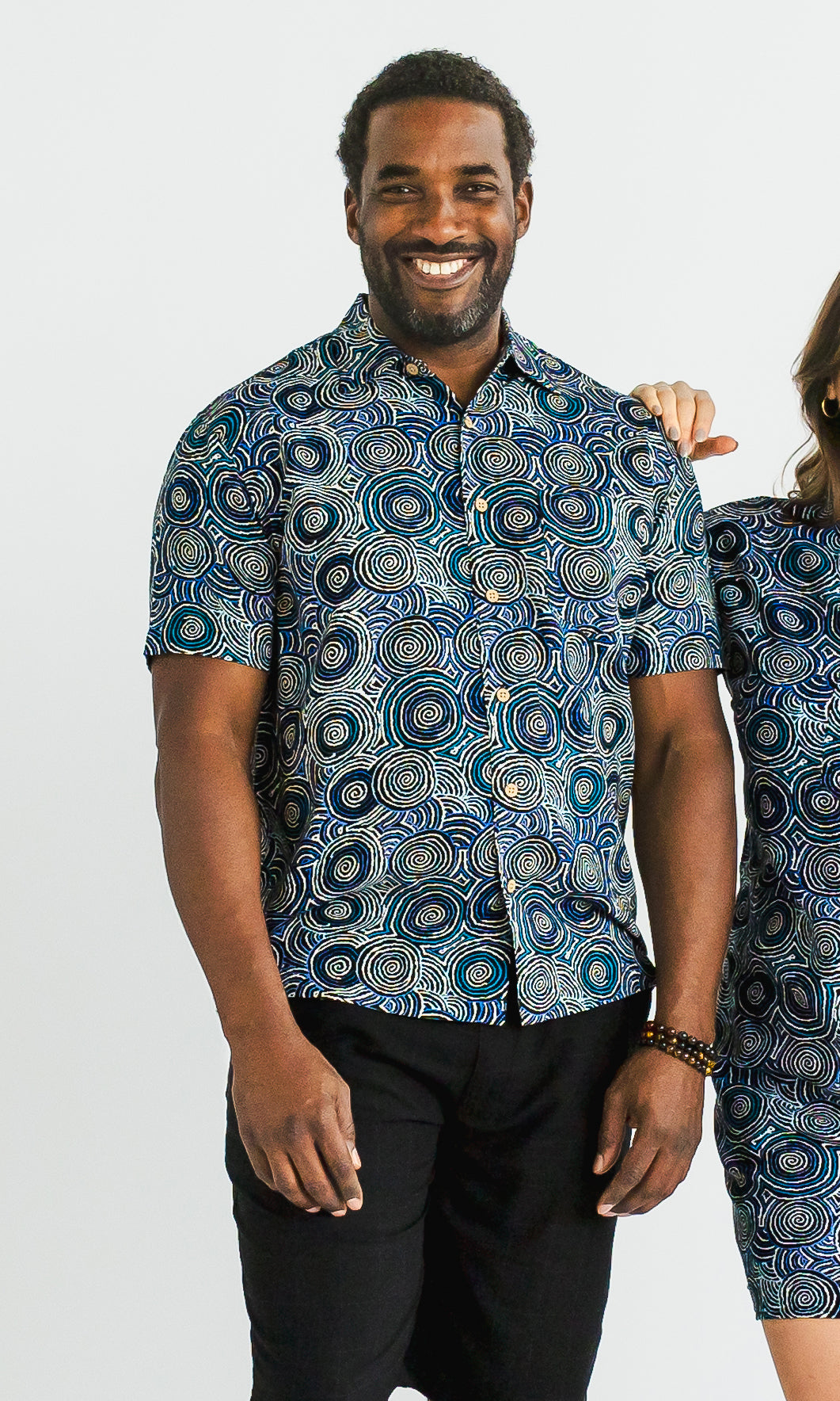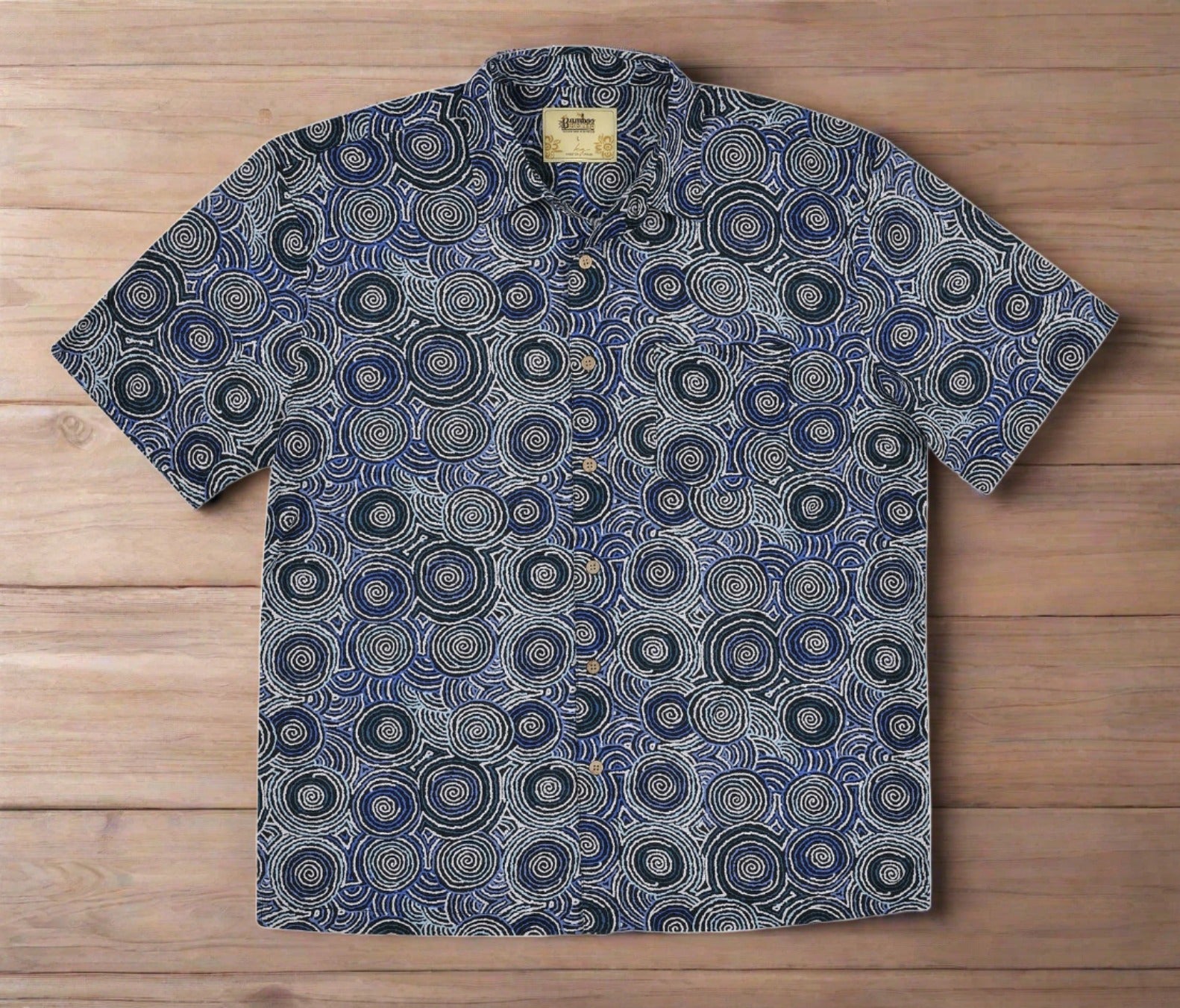 Bamboo Men's Shirt Aboriginal Art Mina Mina Dreaming
