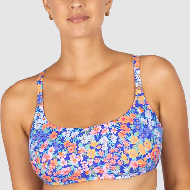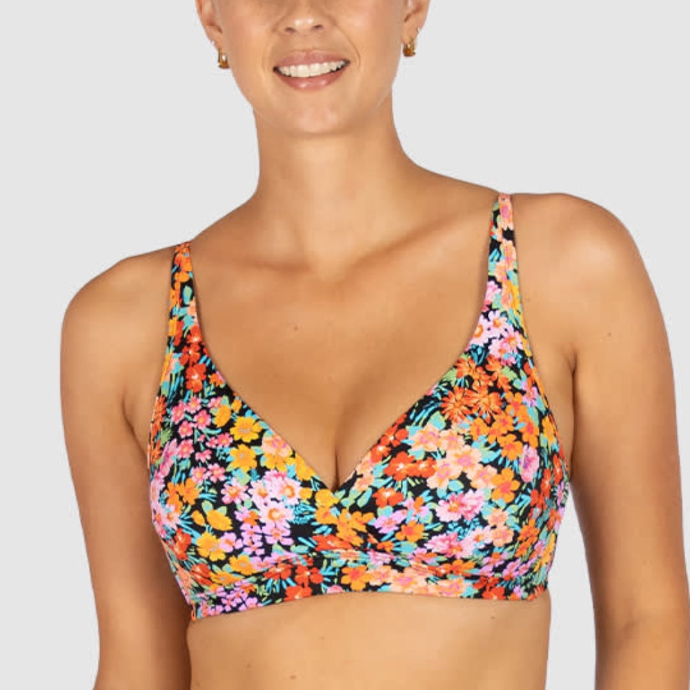 Baku's Biarritz D/DD Twist Bikini Top features a flattering dropped neckline with a twist centre front detail. It has power mesh stability and side boning for added support with removable soft cups. It also features adjustable straps and fastens with a clip back.