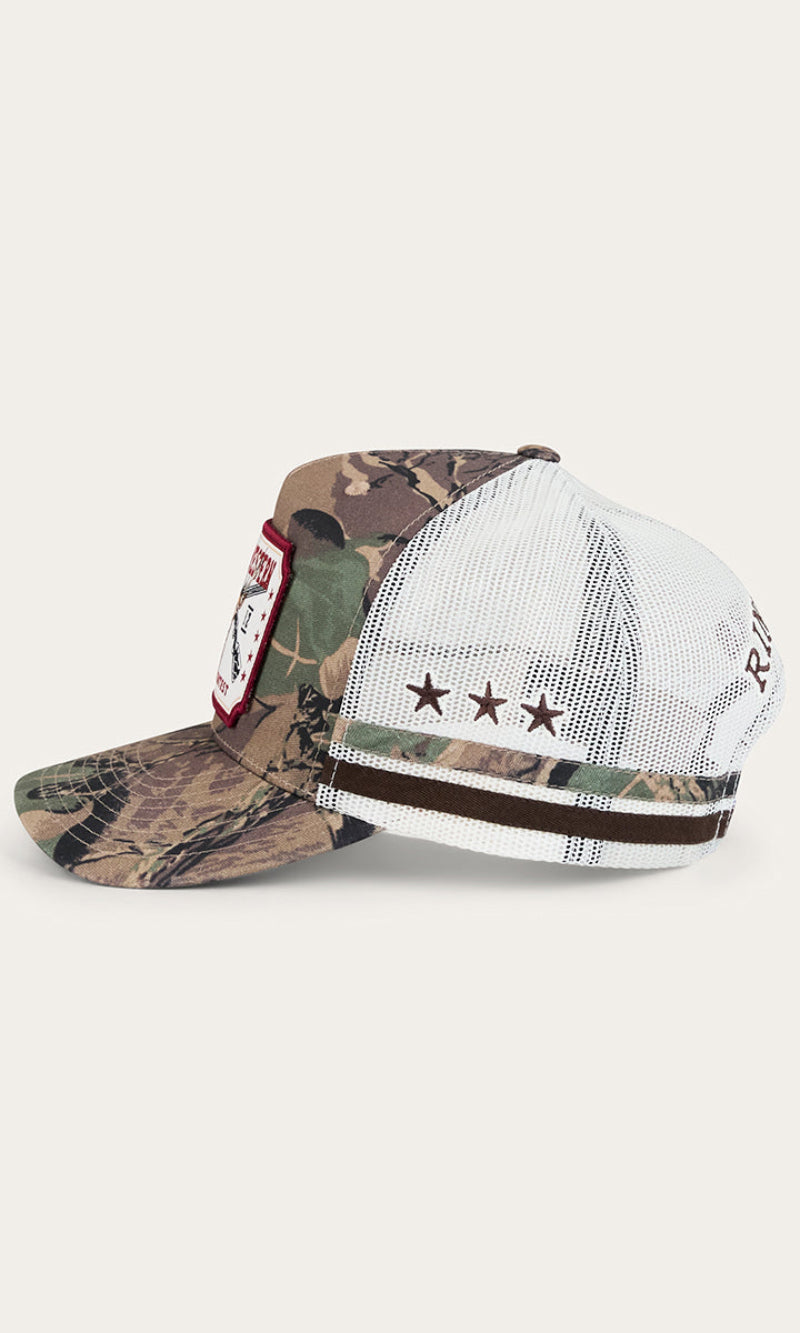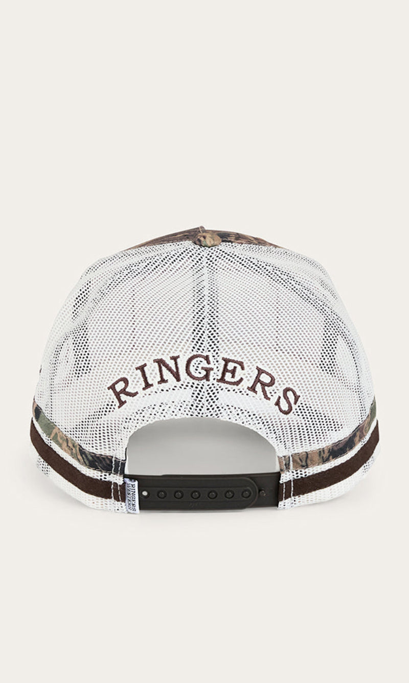 Crafted from a tree print camo fabric, the Big Buck lets you blend into the surrounds for all the right reasons. A curved peak shades eyes from the sun, whilst premium mesh back panels provide optimal ventilation. The deep fitting design features a snapback closure, allowing for a comfortable and customisable fit. A detailed signature woven buck badge and twill side stripes finish this cap off in rugged Ringers style.