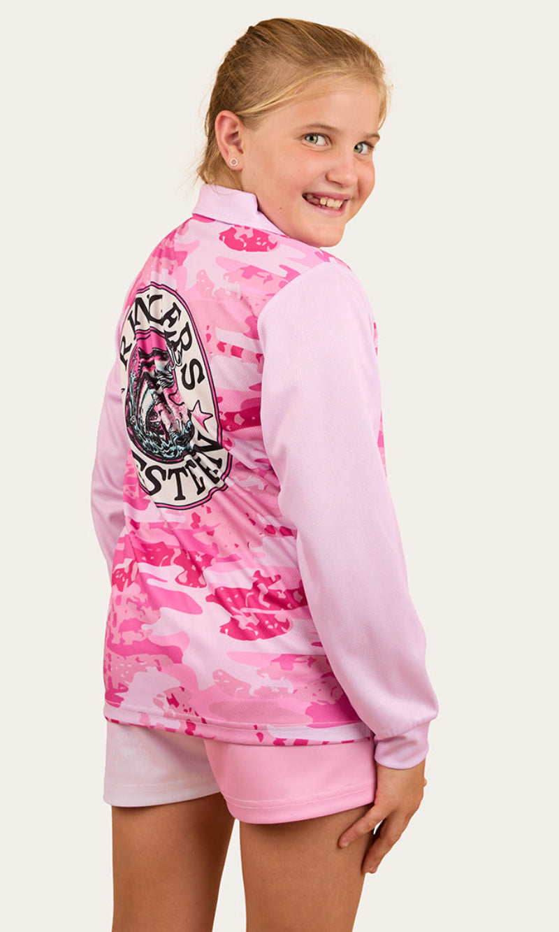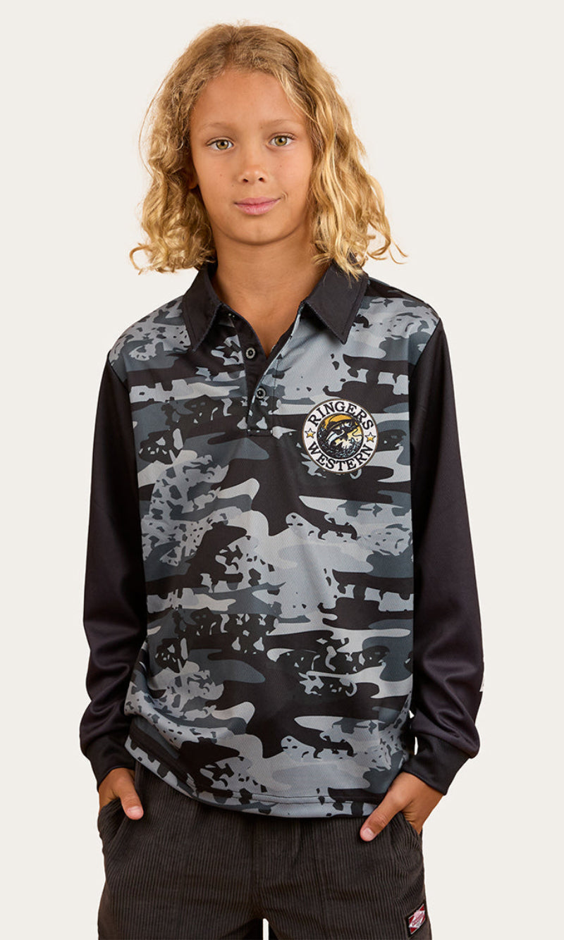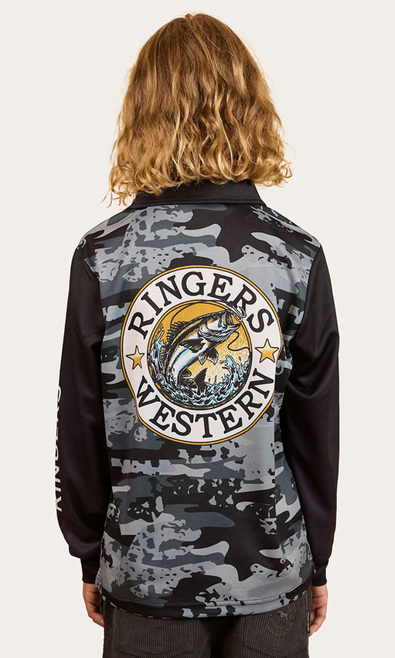 Keep upcoming angler's protected in style with the the Big Catch Kids Fishing Jersey.