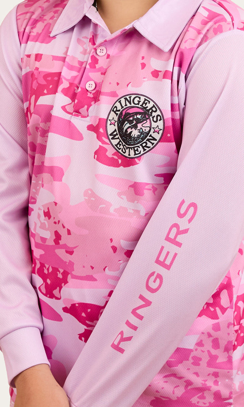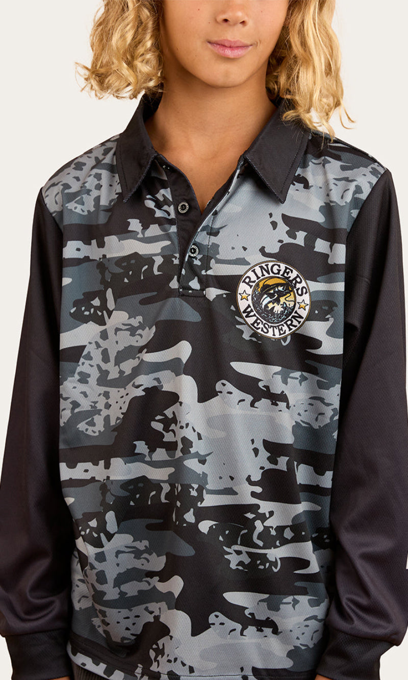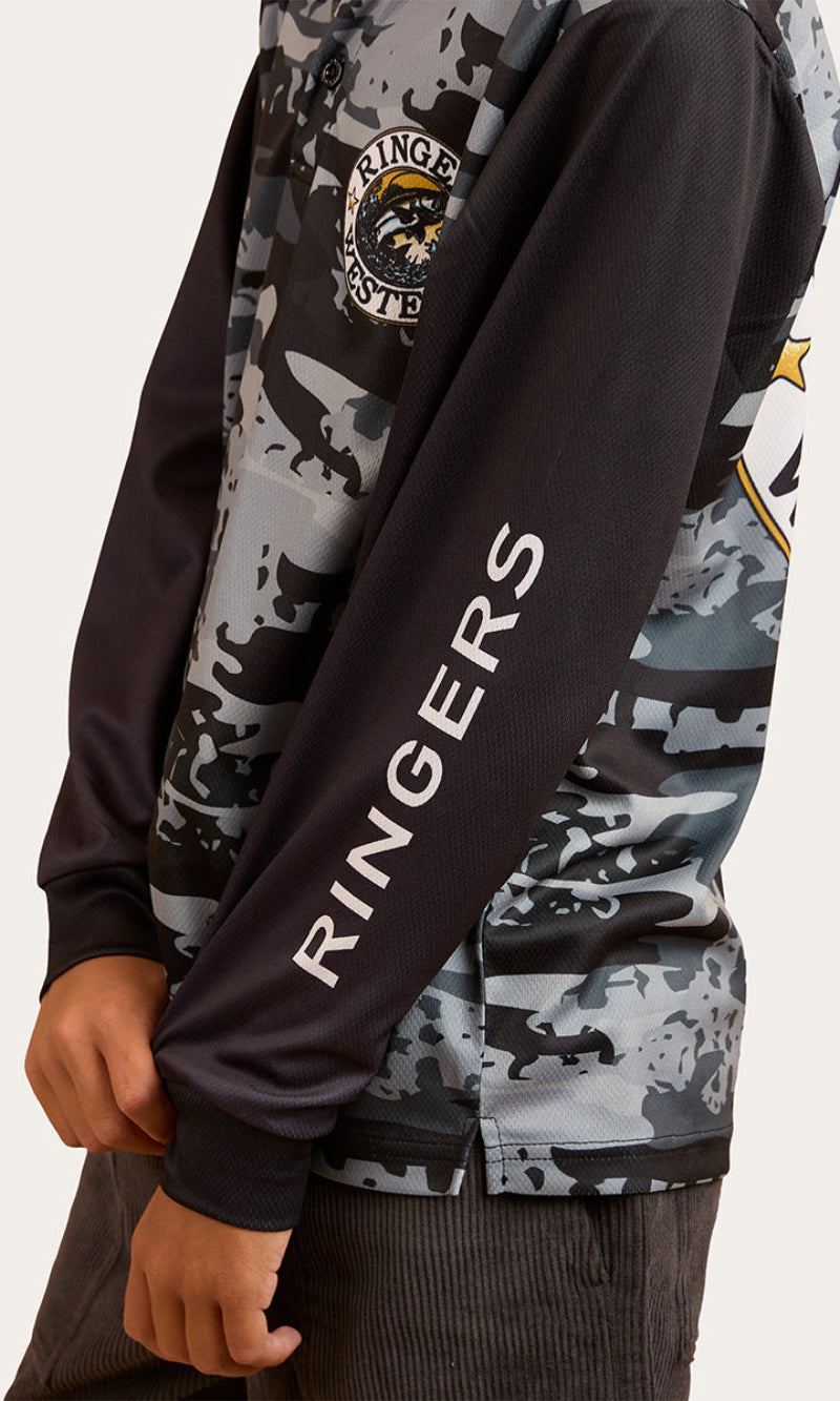 Created from 100% Polyester fabric, this unisex garment is cool and comfortable whilst providing superior protection from the hot Aussie sun. The high performance polyester fabric also boasts quick dry capabilities, essential for a day on the water. The self fabric collar creates a slightly tailored silhouette whilst a 3 button placket allows for convenient wearability, making this garment easy to get on and off over the head. A fade resistant sublimation print stands its ground against the elements whilst a large signature print features on the reverse of this garment for an authentic Ringers touch.