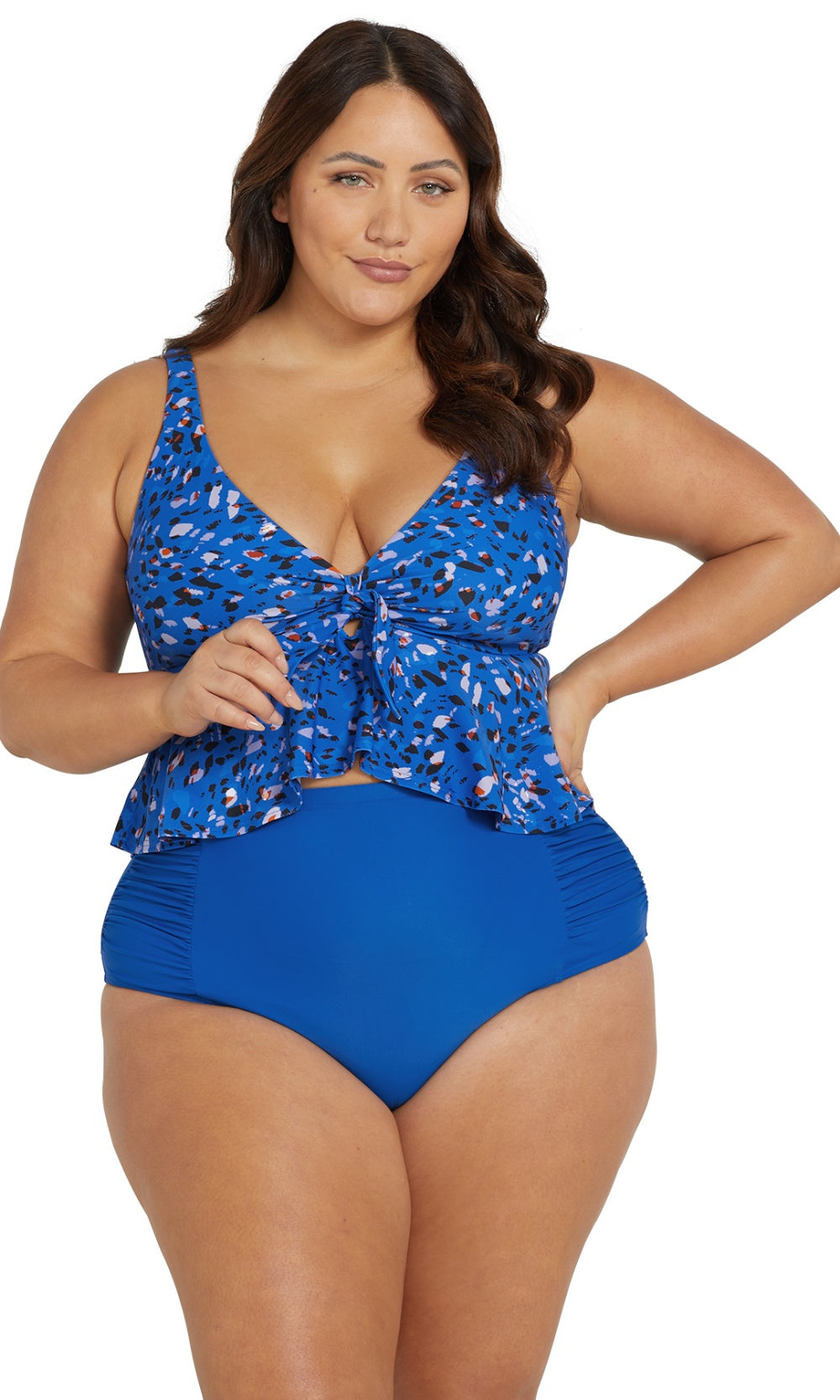 Artesands fits your curves. Our Chagall curve fit and plus size soft cup bikini top has been designed for a smaller cup size and looks amazing on an A cup, B cup, C cup and D cup, this has removable multifit cups. Our Chagall midriff bikini top we say has fashion and form with a faux knot tie front, a small peephole and a cute flounce with just a little bit more coverage. Chagall has wide adjustable straps for extra comfort and support and a back clip is for strength.