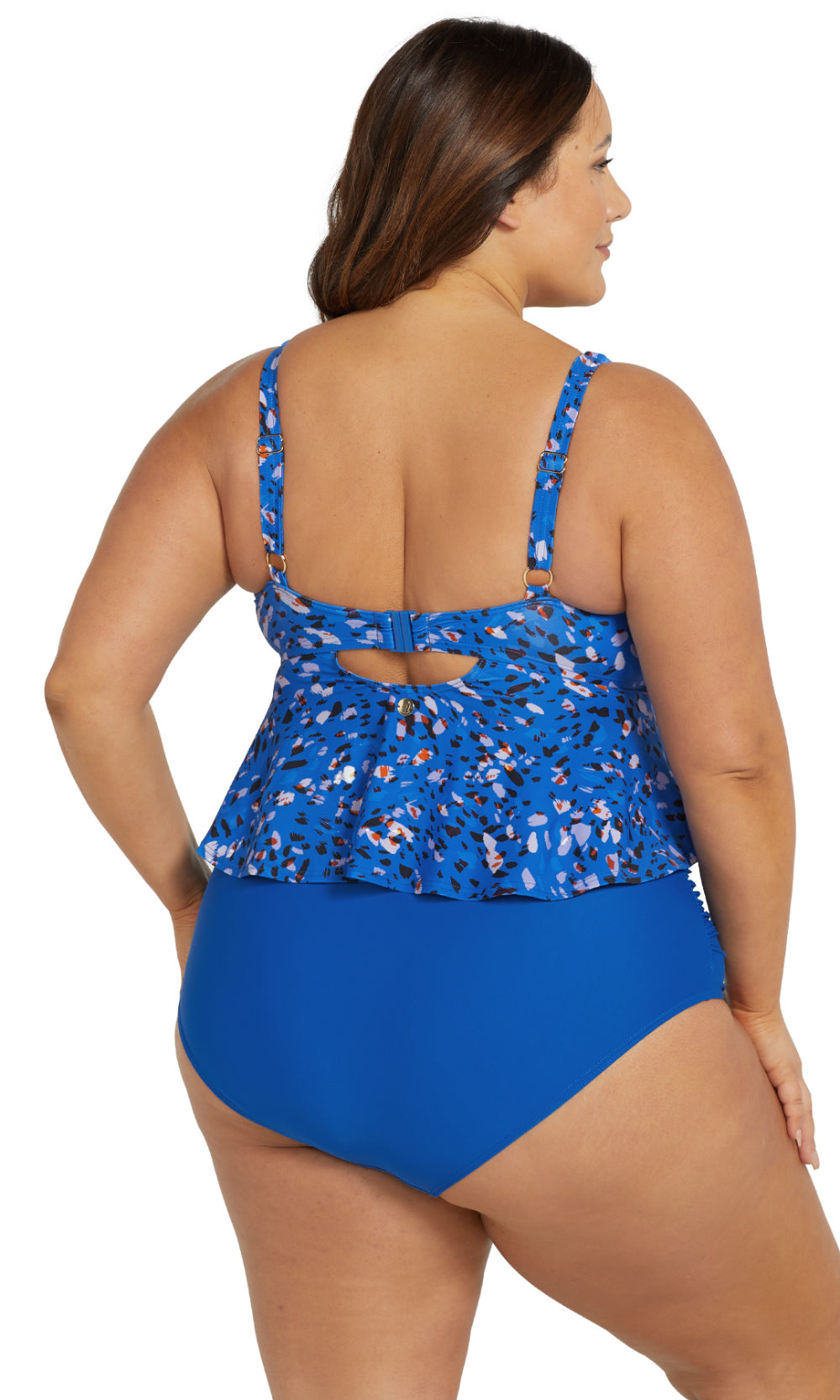 Artesands fits your curves. Our Chagall curve fit and plus size soft cup bikini top has been designed for a smaller cup size and looks amazing on an A cup, B cup, C cup and D cup, this has removable multifit cups. Our Chagall midriff bikini top we say has fashion and form with a faux knot tie front, a small peephole and a cute flounce with just a little bit more coverage. Chagall has wide adjustable straps for extra comfort and support and a back clip is for strength.