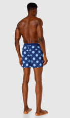 These navy blue swim shorts for men are the perfect stylish addition to your summer wardrobe. The elasticated waistband at the back ensures a comfortable and secure fit, while the flat waistband at the front with a classy press stud and functional zip fly provides a sleek and sophisticated look. The quick dry fabric technology in these navy blue swim shorts ensures that you will stay cool and comfortable all day long. Additionally, the secure back zip pocket provides an extra place to store your belongings, and the internal white drawcord allows you to adjust the fit as needed. So get your summer style started off right with these stylish men's swim trunks, they’ll have you feeling like James Bond on the beach!