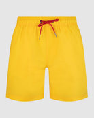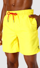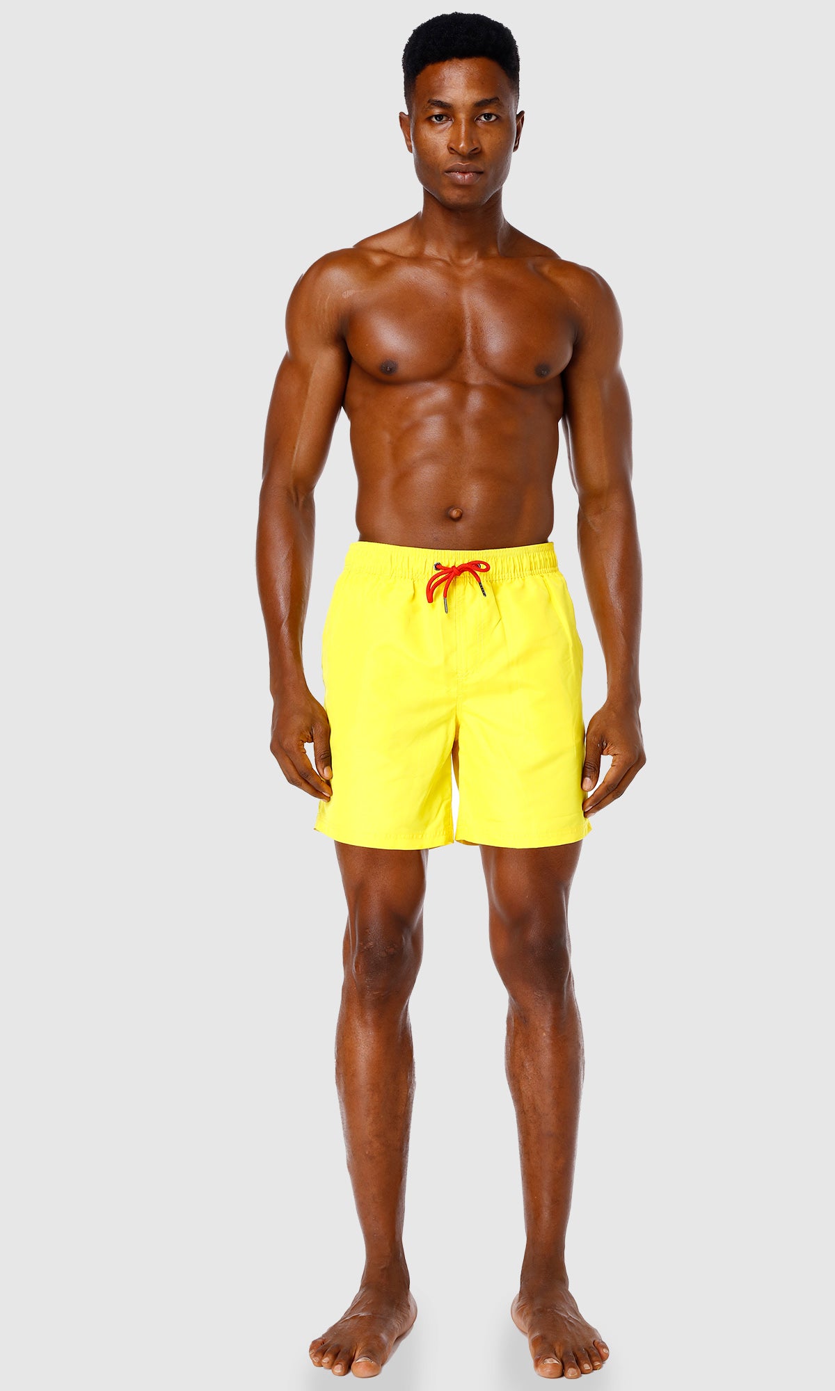 - These Yellow swim trunks feature an elastic waistband for a snug fit, these swim shorts will keep you looking good and feeling comfortable all day long.