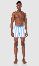 - You won’t have to worry about these blue striped swim shorts falling down or riding up with the elasticated waistband you'll feel more confident and comfortable when you wear them.