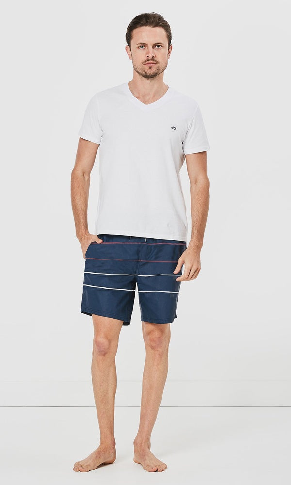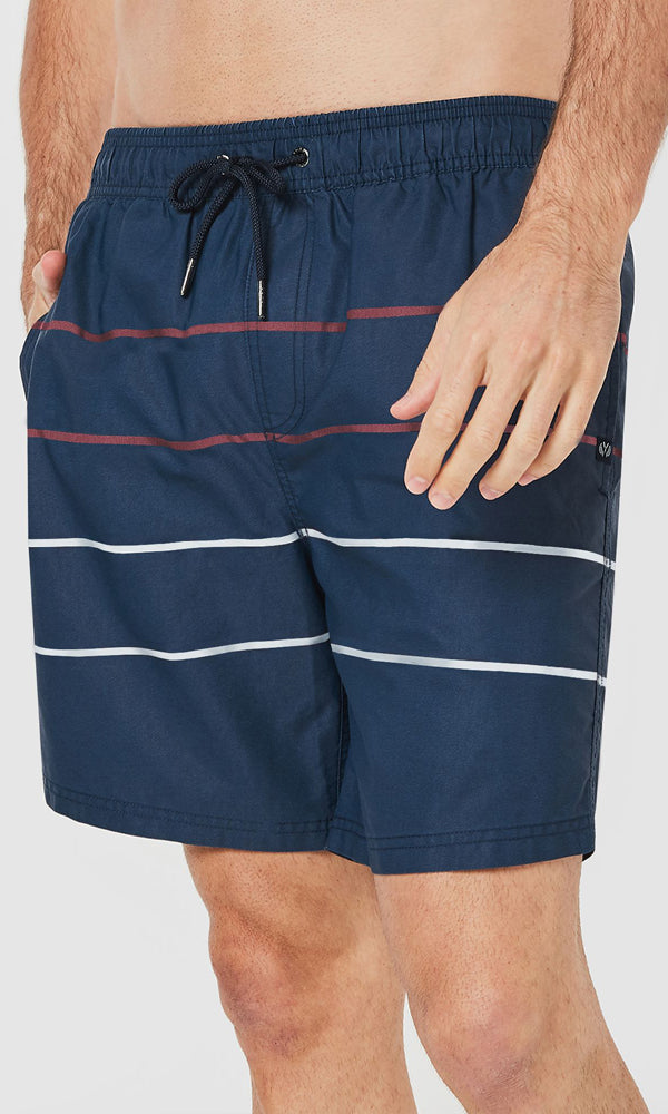 Featuring contrasting stripes on a solid, these shorts will keep you cool whether you're at the beach, the bar, or anywhere in between.