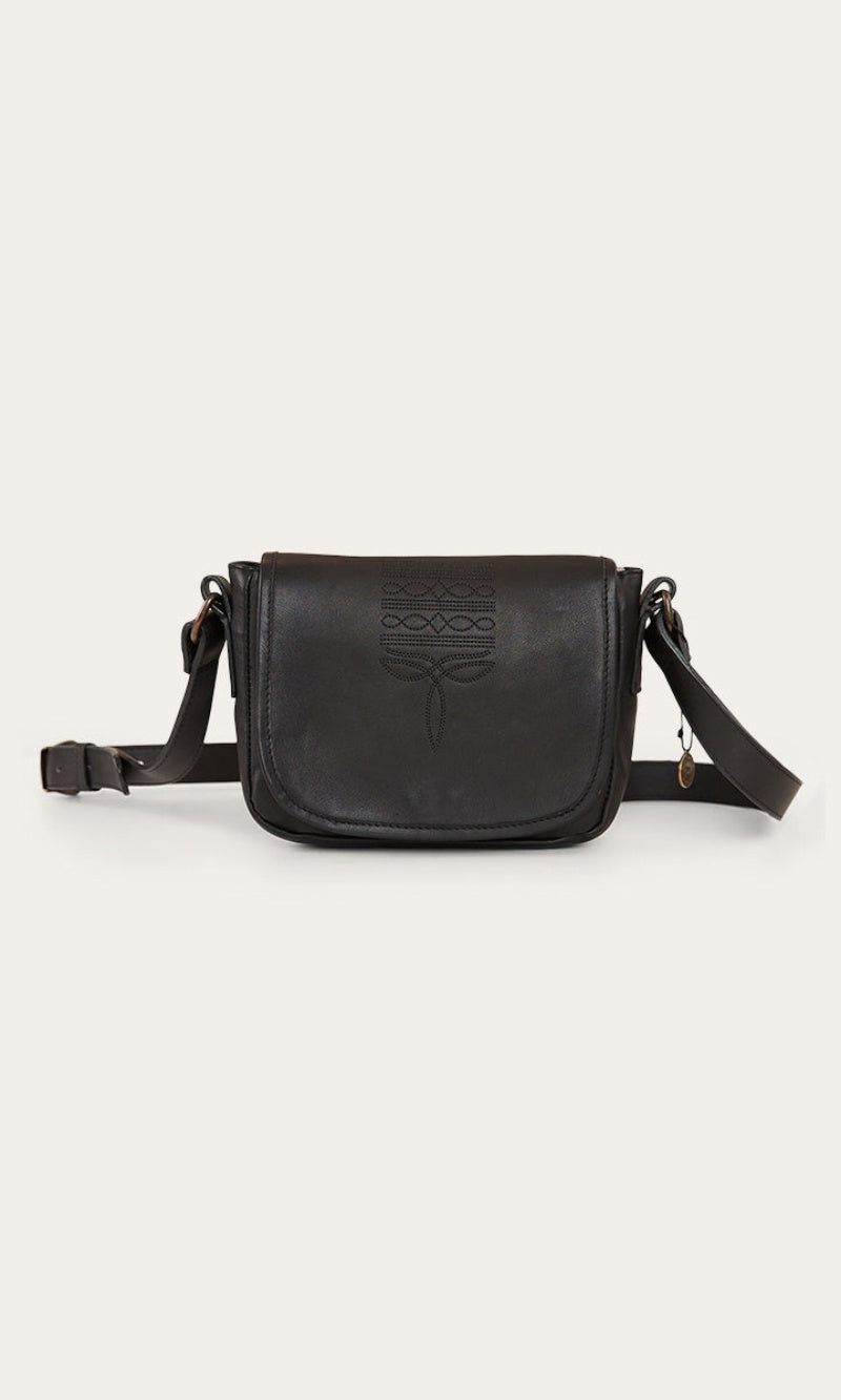 Crafted in Mexico from 100% genuine leather, this bag is a versatile leather accessory that exudes luxury and ensures durability. Inspired by traditional saddle bags, Callie features a top stitch design which adds a touch of artisanal detail. Its versatility shines through with an adjustable shoulder strap and ample organisation space for your belongings. Each bag is subtly branded with an embossed Ringers Western logo and branded hardware. Compact yet spacious, the Callie saddle bag is the perfect companion for any adventure, seamlessly blending style and functionality for the modern cowgirl.