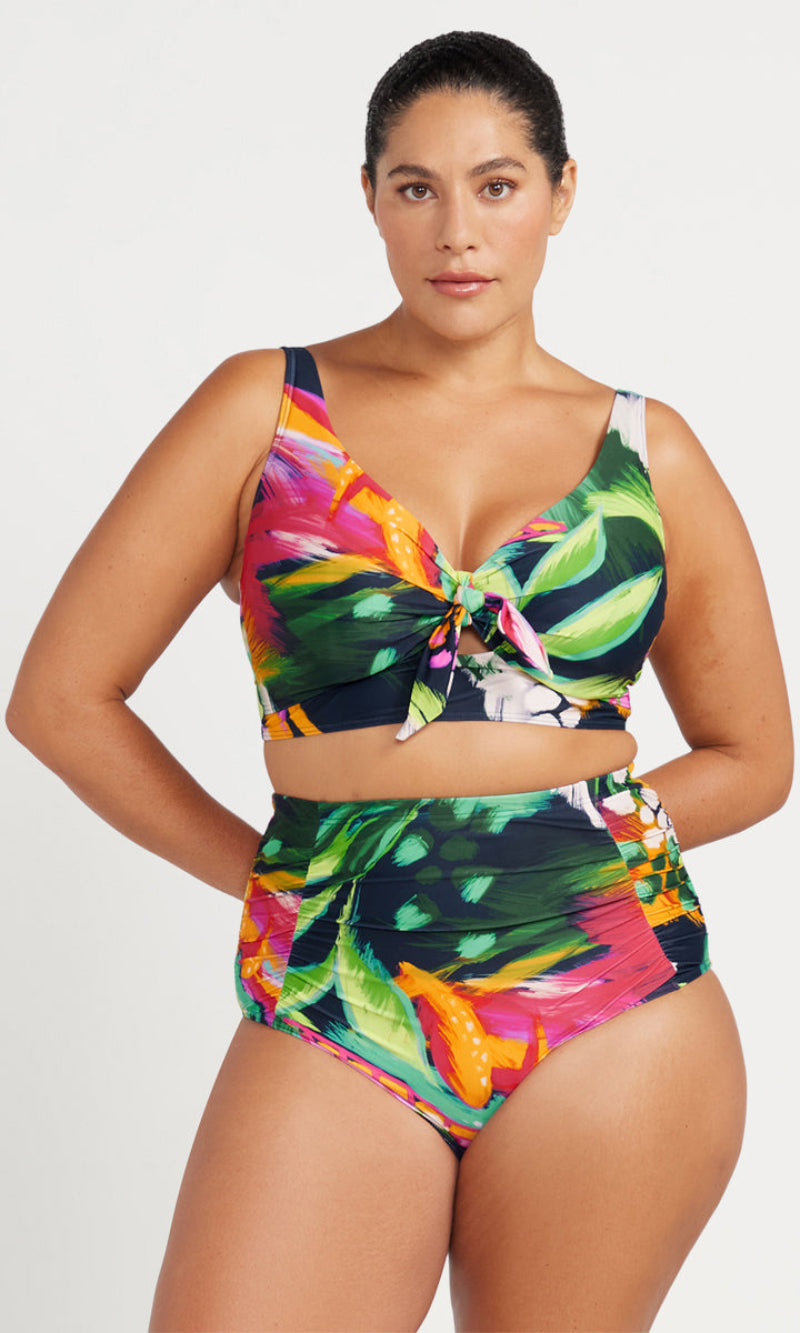 Artesands Fits Your Curves. Our Artesands Raphael high waist and low leg line ruched swim pants perfectly fits your curves. This curve fit and plus size swim pant has 360 degree powermesh lining and ruching on the front and side panels with good bottom coverage and a low leg line. This swim pant is our most coverage swim pant.