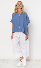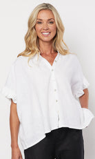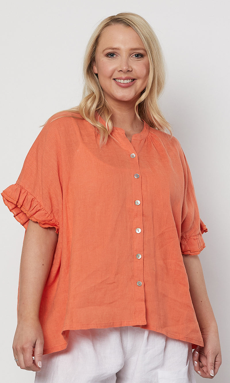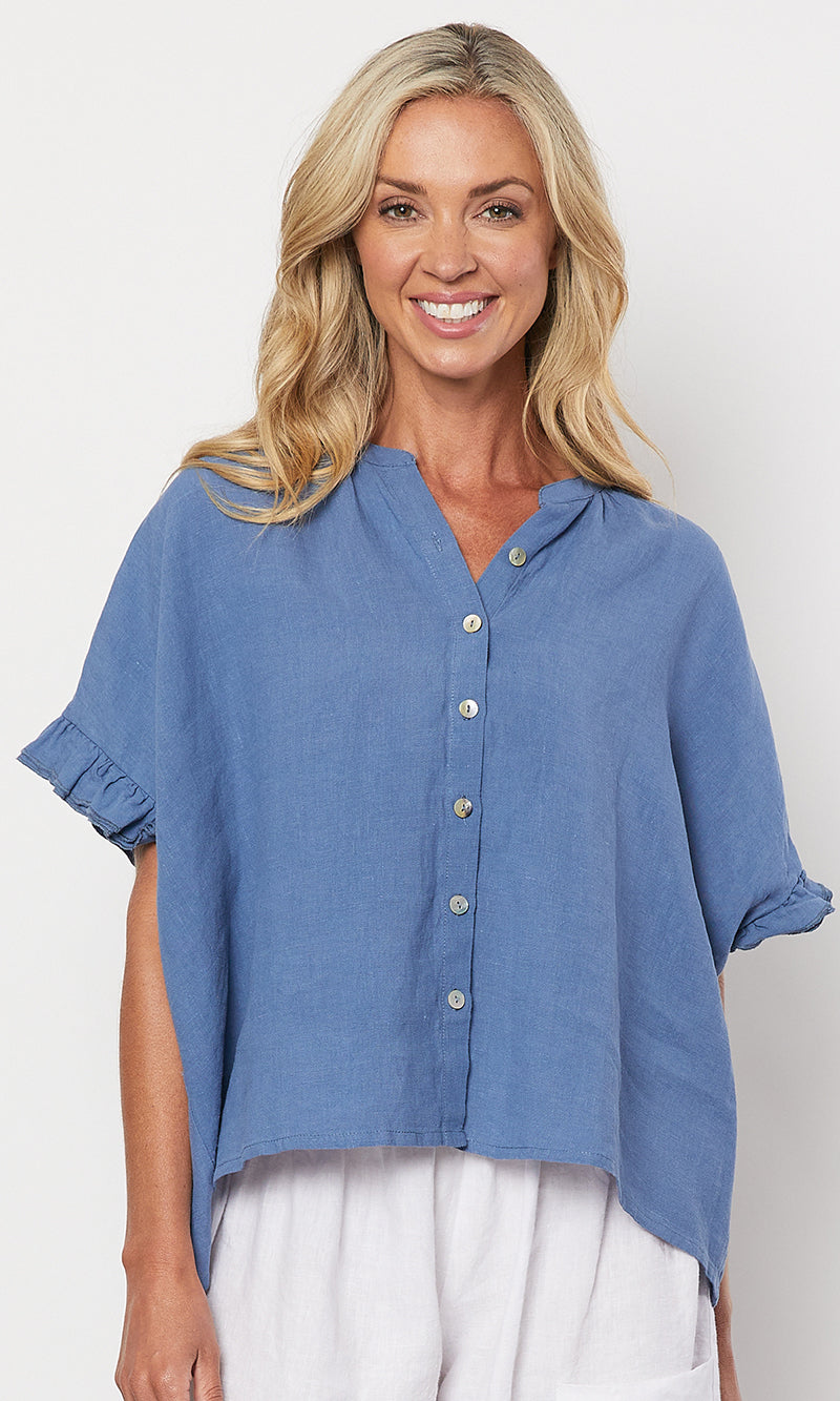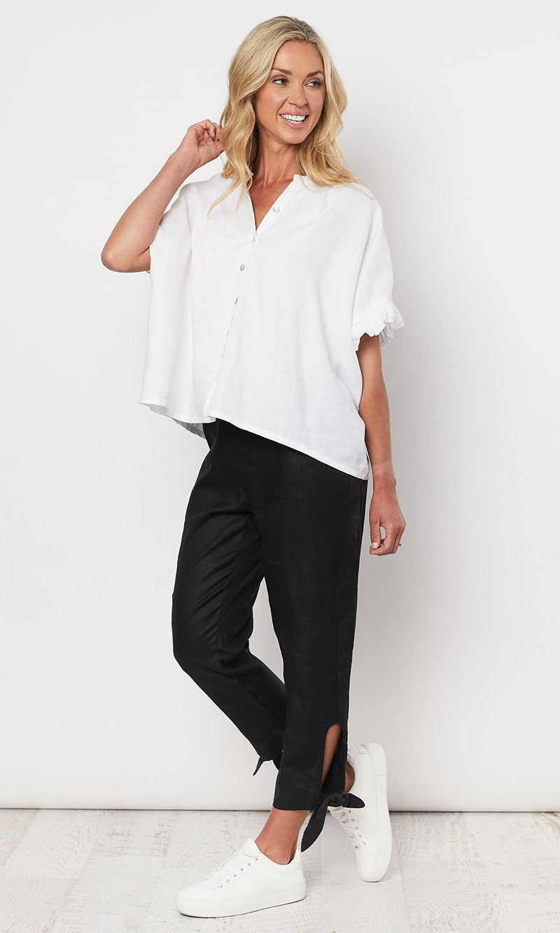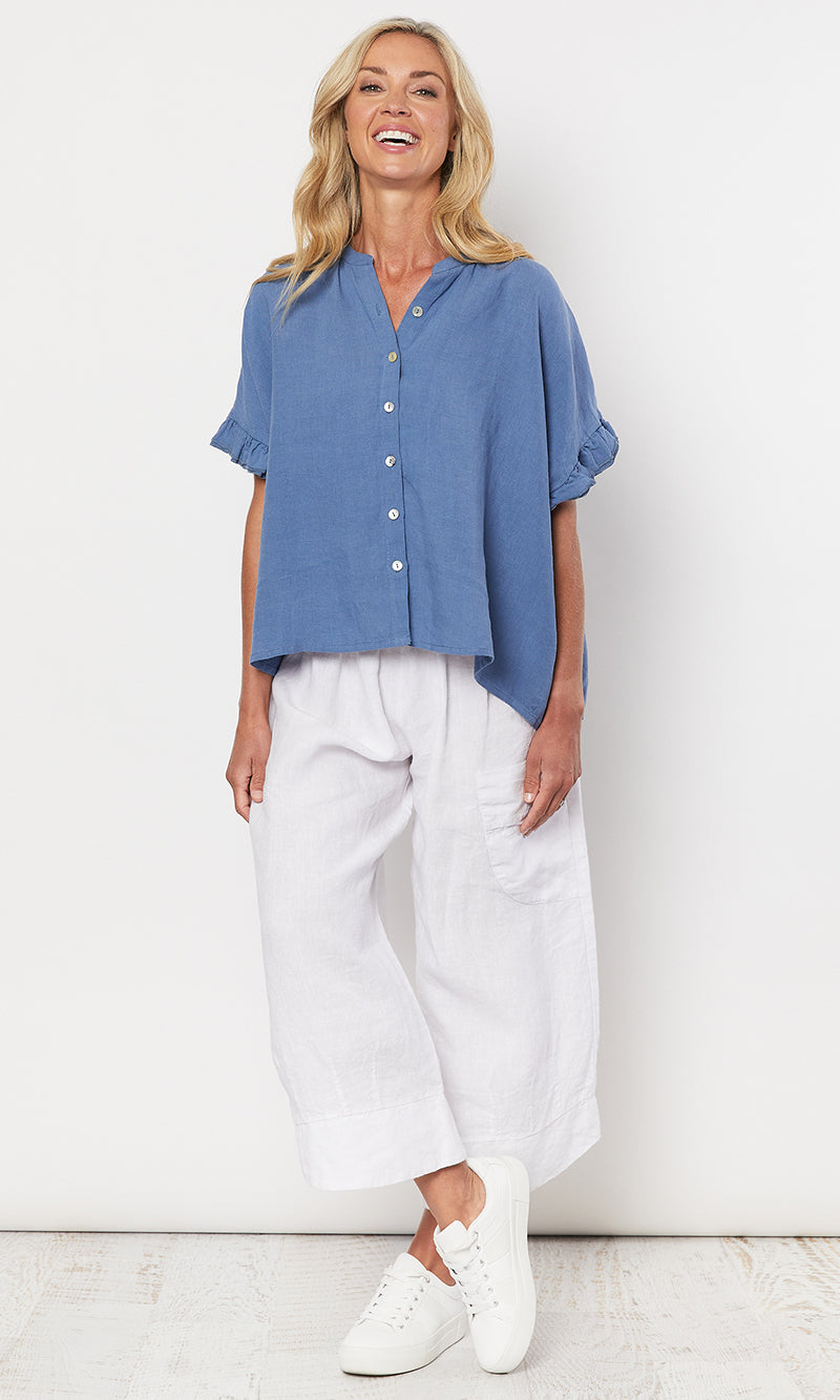 We love linen especially the Frilled Sleeve Shirt by Clarity. Crafted in our signature washer finish pure linen, this relaxed fit shirt will pair back with the watercolour pant or the pocket detail pant. Everyday style for everybody.