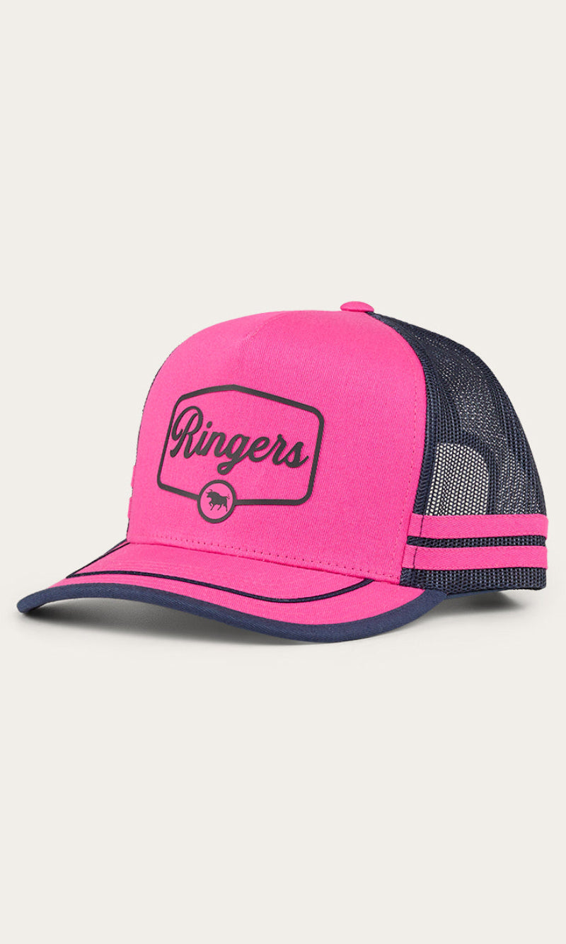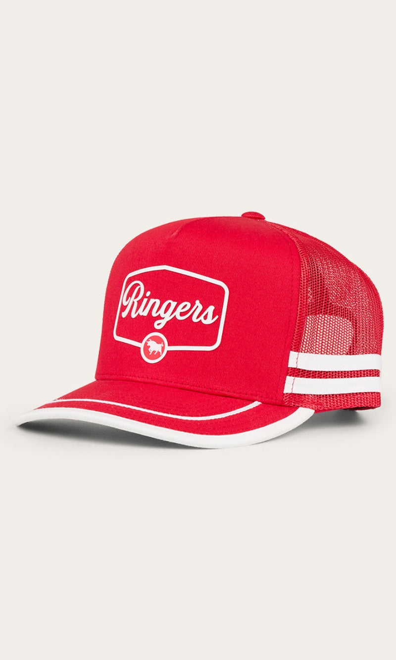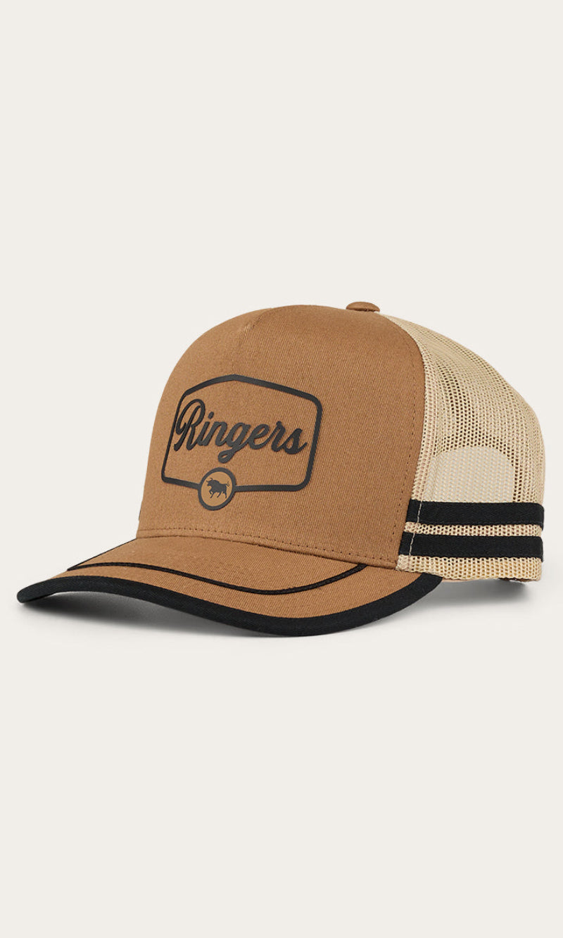 Our Ringers Western trucker caps represent the heart and soul of everything we stand for. This cap has a premium-quality mesh back and metal eyelets for optimal ventilation, ensuring all-day comfort on sun-soaked days. The structured front panel proudly displays a Ringers Western logo, symbolising spirit and tradition. The classic snap-back closure offers an adjustable fit for most head sizes. Whether you’re out travelling the open road, attending a local festival or just representing the brand, our trucker caps have you covered.