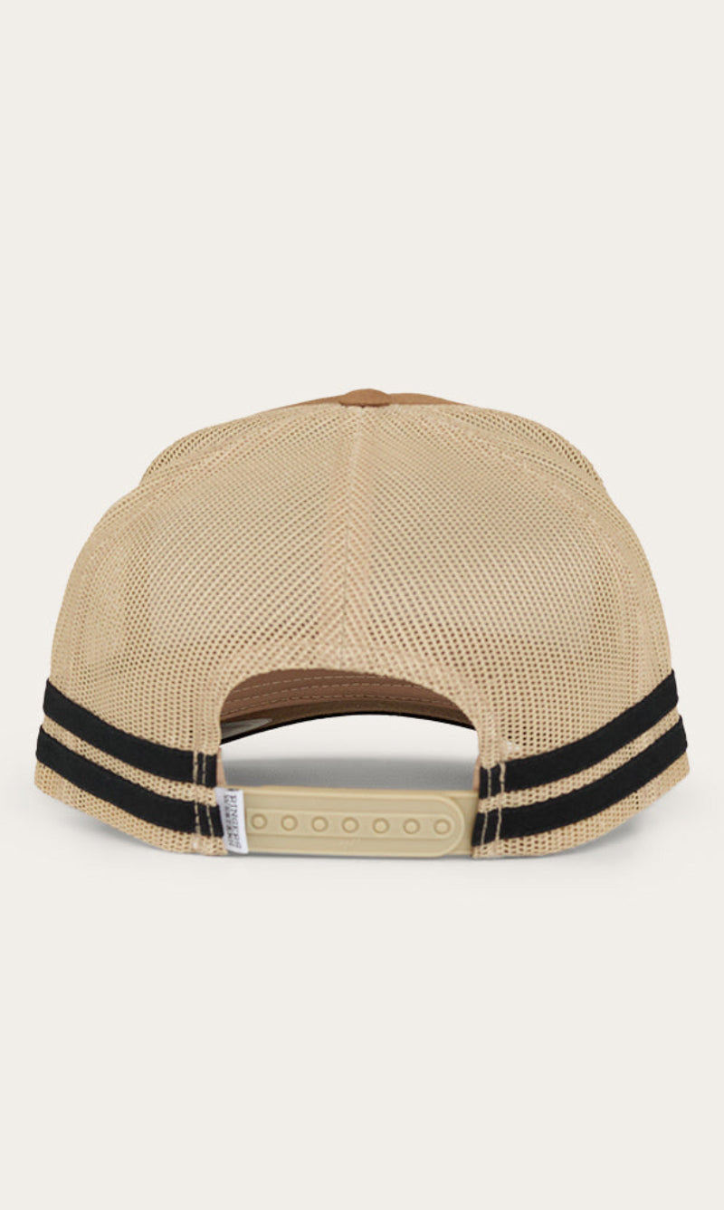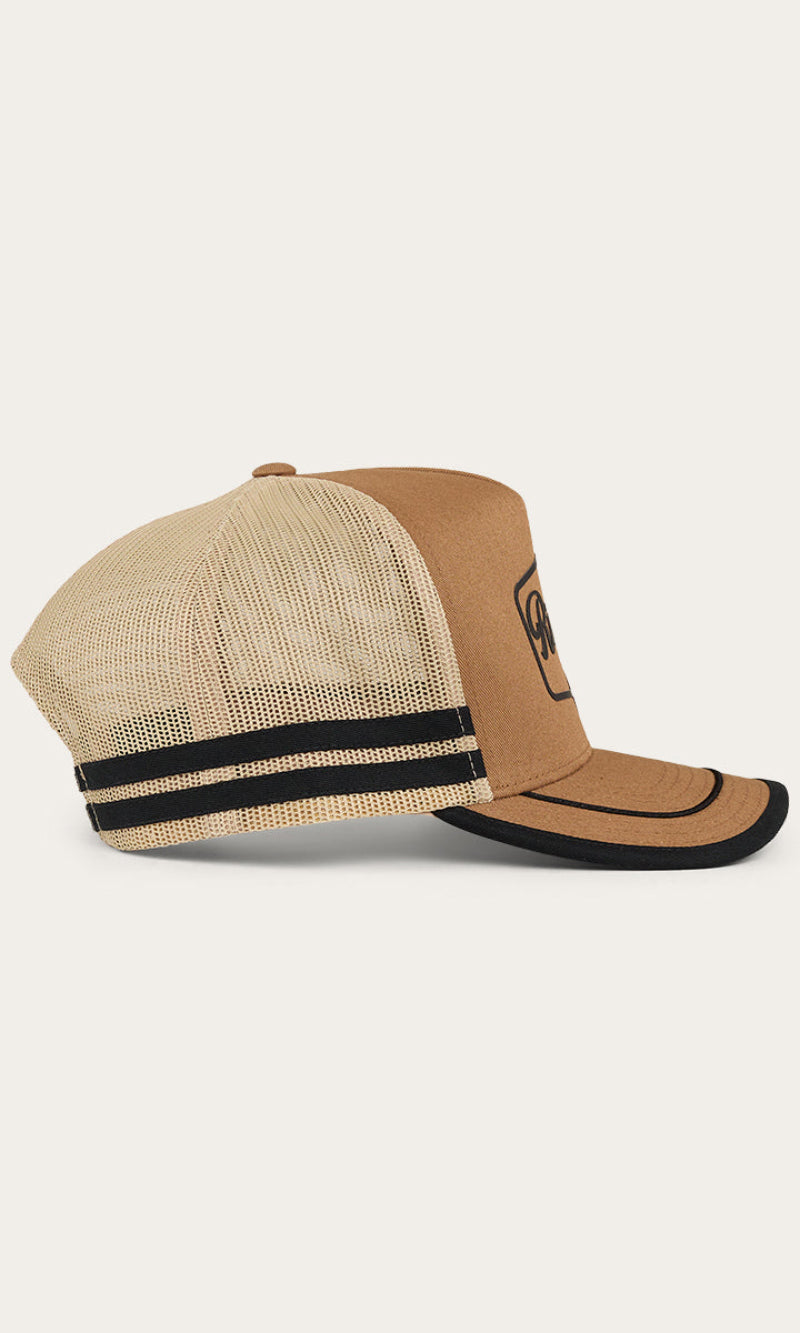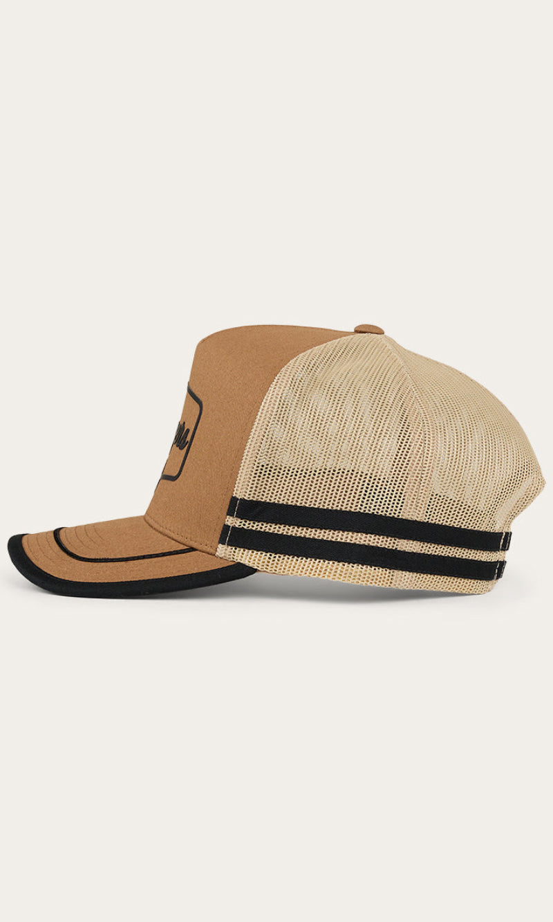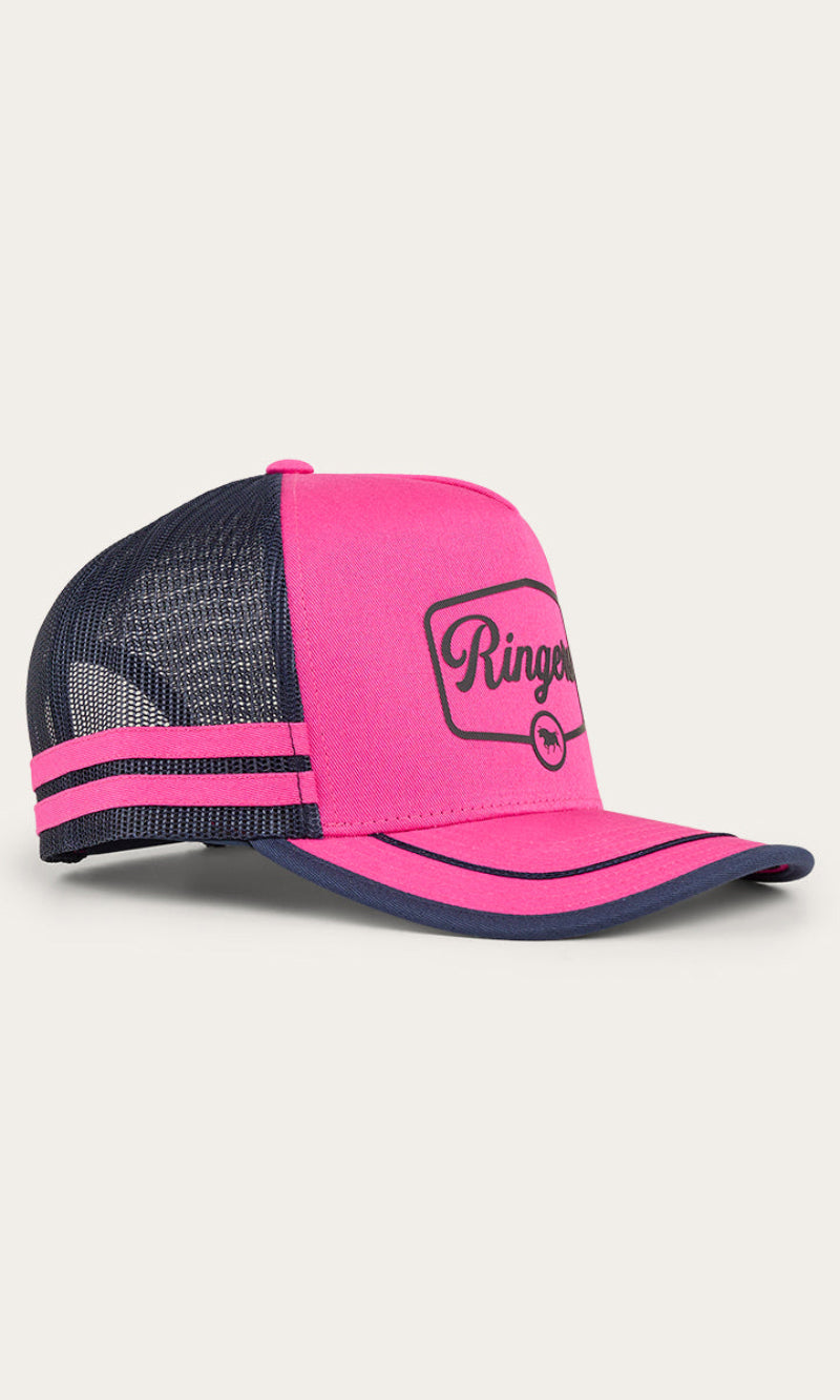 Our Ringers Western trucker caps represent the heart and soul of everything we stand for. This cap has a premium-quality mesh back and metal eyelets for optimal ventilation, ensuring all-day comfort on sun-soaked days. The structured front panel proudly displays a Ringers Western logo, symbolising spirit and tradition. The classic snap-back closure offers an adjustable fit for most head sizes. Whether you’re out travelling the open road, attending a local festival or just representing the brand, our trucker caps have you covered.