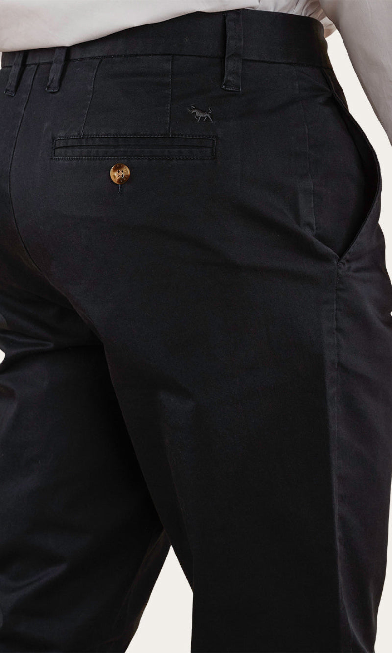 Crafted with precision from premium cotton, these chinos promise unparalleled comfort and a flattering fit on many different body shapes and sizes. The Collins is a regular fit chino, which closely follows the natural leg line without falling too loose or clinging too tight. These chinos feature regular 2 1/2 inch belt loops which you can feed through a Ringers Western James belt for extra hold. Multiple pockets are featured across the garment for convenient storage spaces for smaller items. Designed to resist wear and tear, they are a wardrobe staple you can rely on season after season for those slightly more corporate outings.
