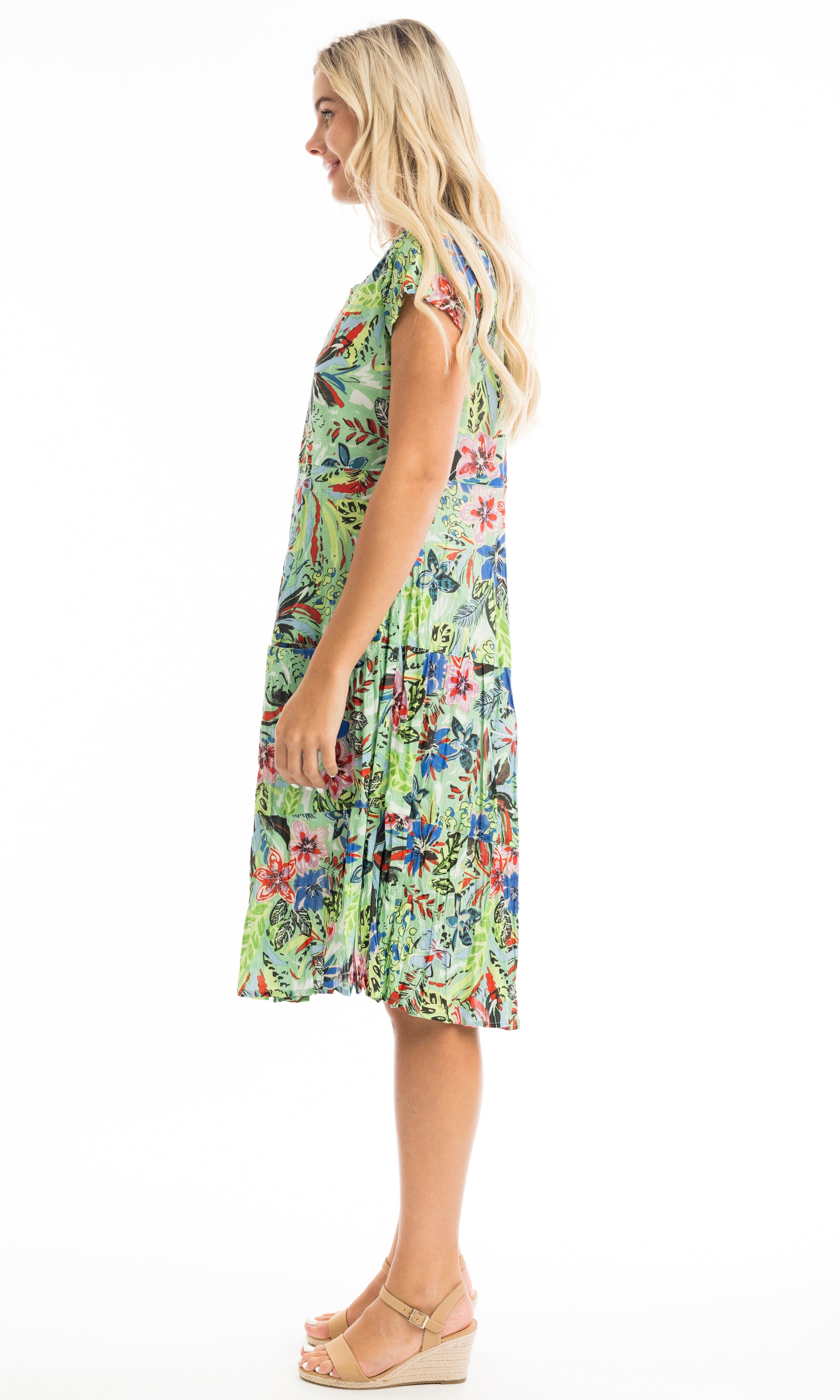 Embrace colour in our Grayton bubble dress. Featuring an open neckline, relaxed short sleeves, and practical pockets, this dress showcases multi-coloured patterns perfect for summer. Its flowing silhouette offers both comfort and style, making it ideal for beach outings and leisurely strolls. The perfect effortless summer dress!