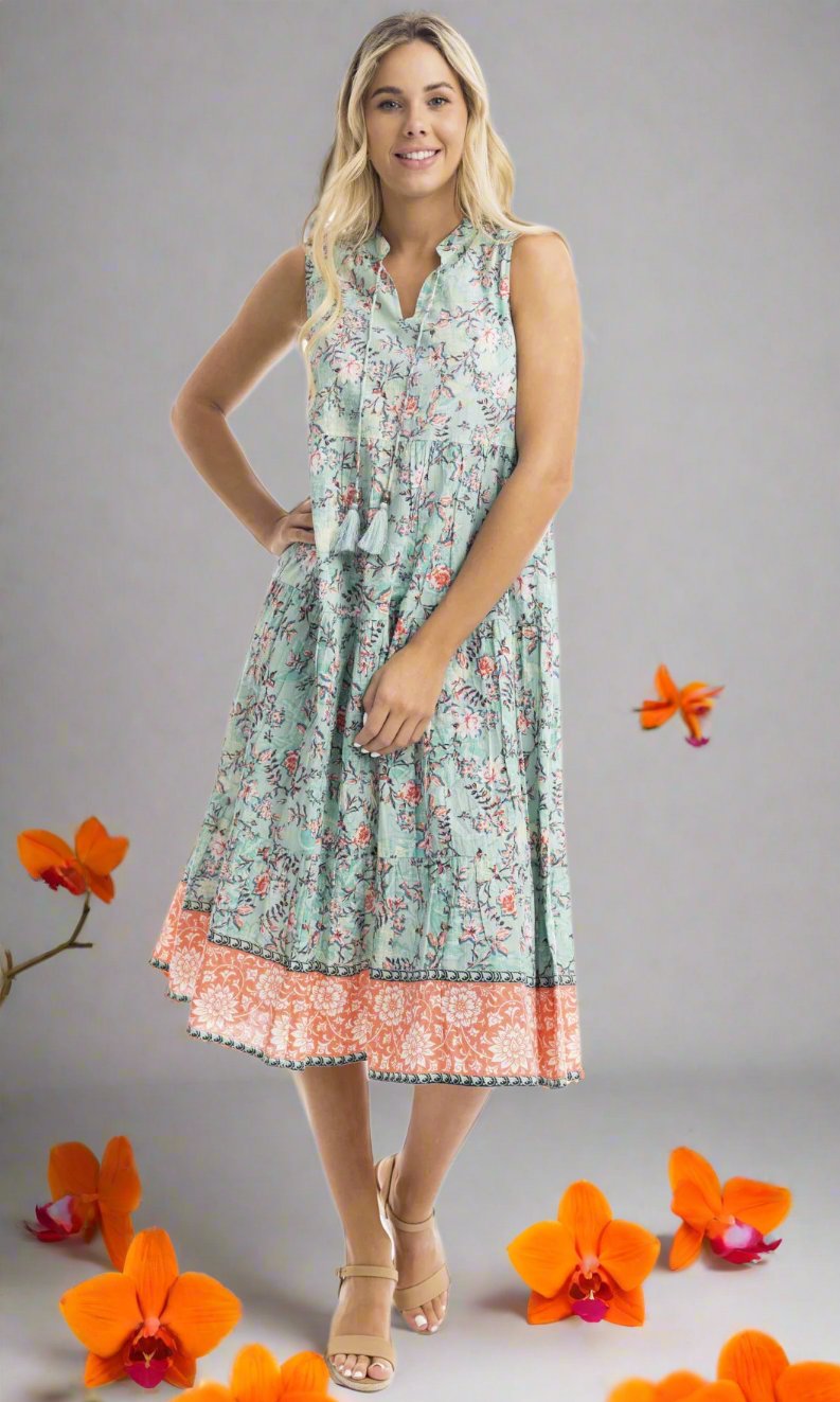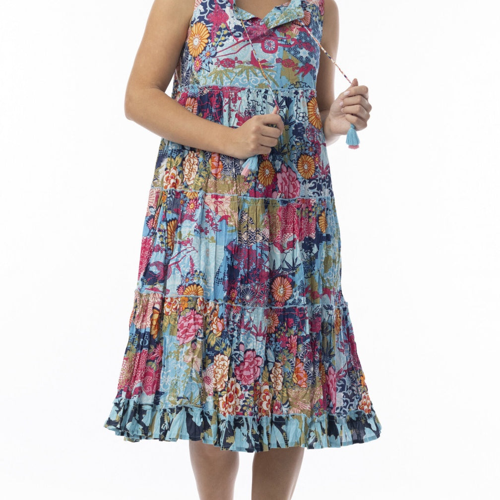 Crinkle Cotton Dress Boho Sleeveless Ishigaki