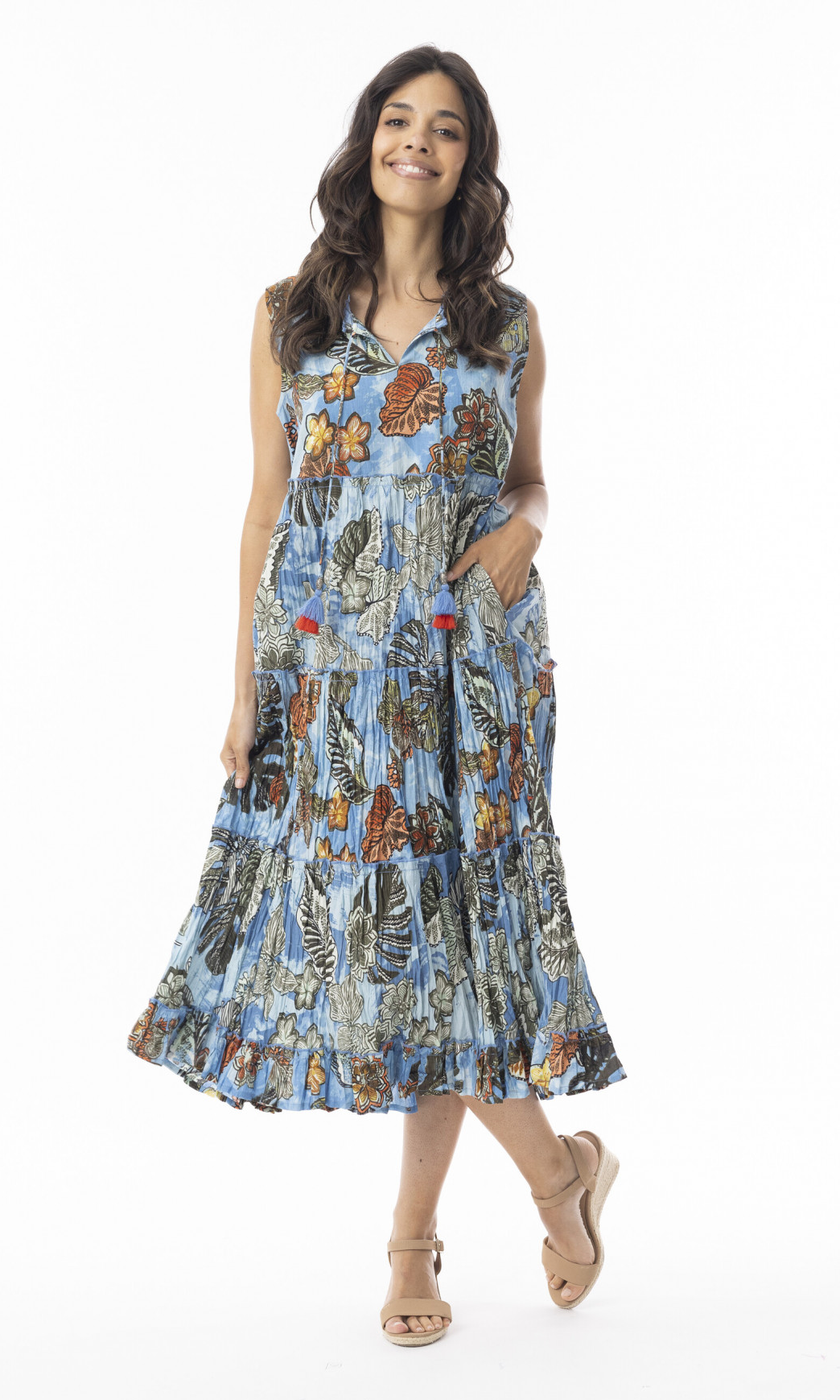 Crinkle Cotton Dress Boho Sleeveless Lima Blue