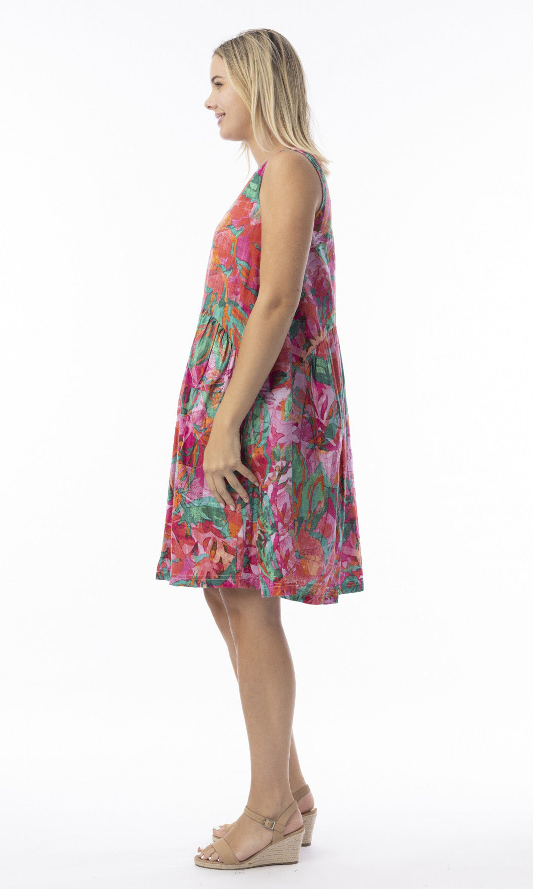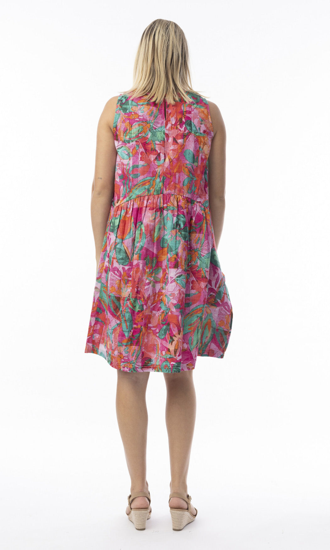 Add a touch of fun to your summer wardrobe with the Sao Paulo bubble dress. Designed with a flattering high neckline, sleeveless cut, and a softly gathered waist that flows into a knee-length skirt, this dress features eye-catching patterns made for sunny days. Its airy silhouette delivers breezy comfort and effortless style—perfect for beach days, picnics, and relaxed summer adventures.