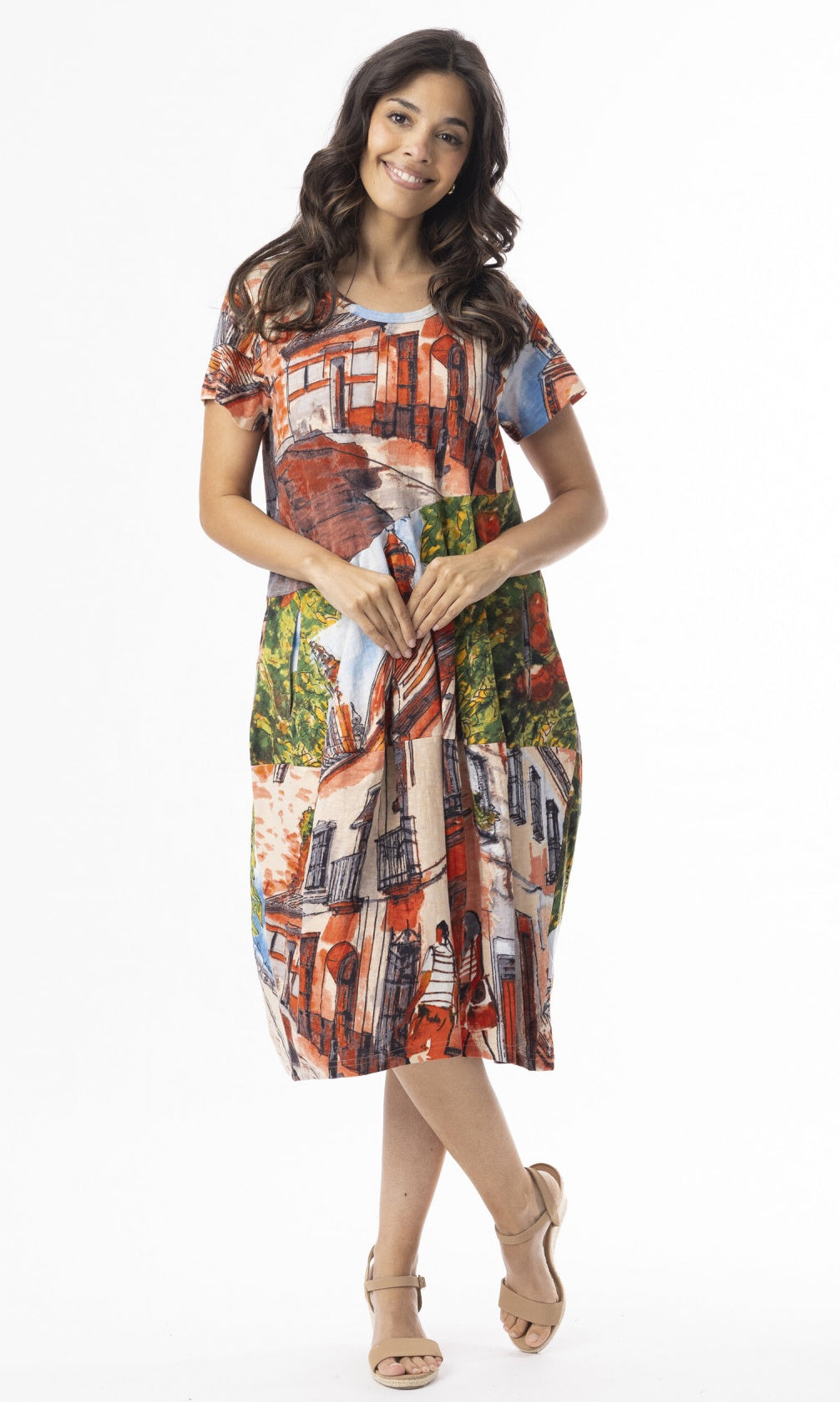 Cotton Knit Dress Bubble Short Sleeve Tower Peach