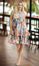 Embrace relaxed summer elegance with our Luzon bubble dress. Featuring a high neckline, sleeveless design, and gathered waist seam that falls into a knee length skirt, this dress showcases beautiful patterns perfect for summer. Its flowing silhouette offers both comfort and style, making it ideal for beach outings and leisurely strolls. The perfect effortless summer dress!