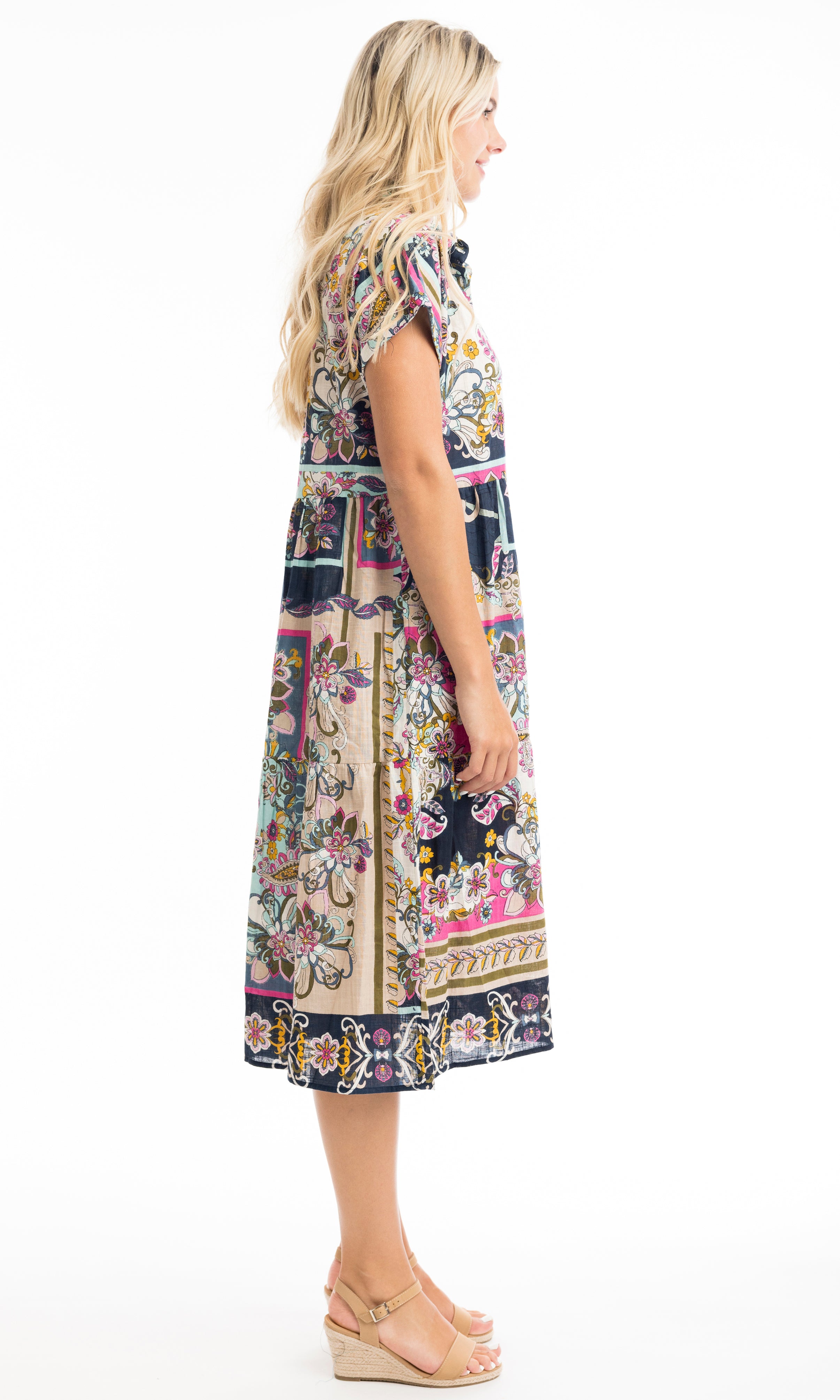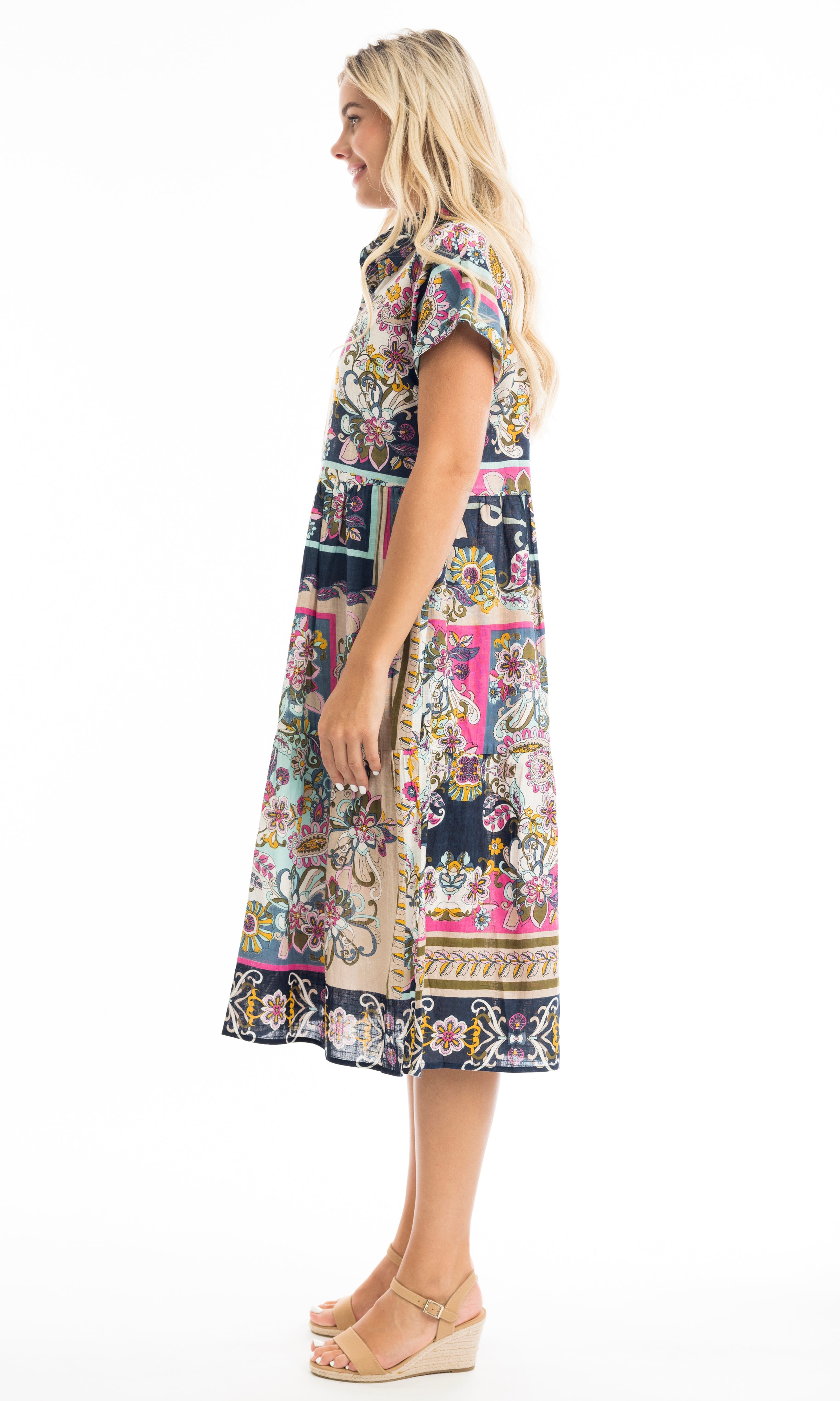 Effortlessly chic, this Ishigaki patch dress is a must-have. The dress features a collared neckline and short sleeves, this dress falls gracefully at a midi length, giving the dress a classic, sophisticated touch. Its unique patchwork design combines beautiful prints and colours, and convenient side pockets add a practical element to the style. Whether for a casual outing or a special occasion, this dress is perfect for any occasion!