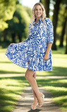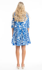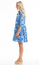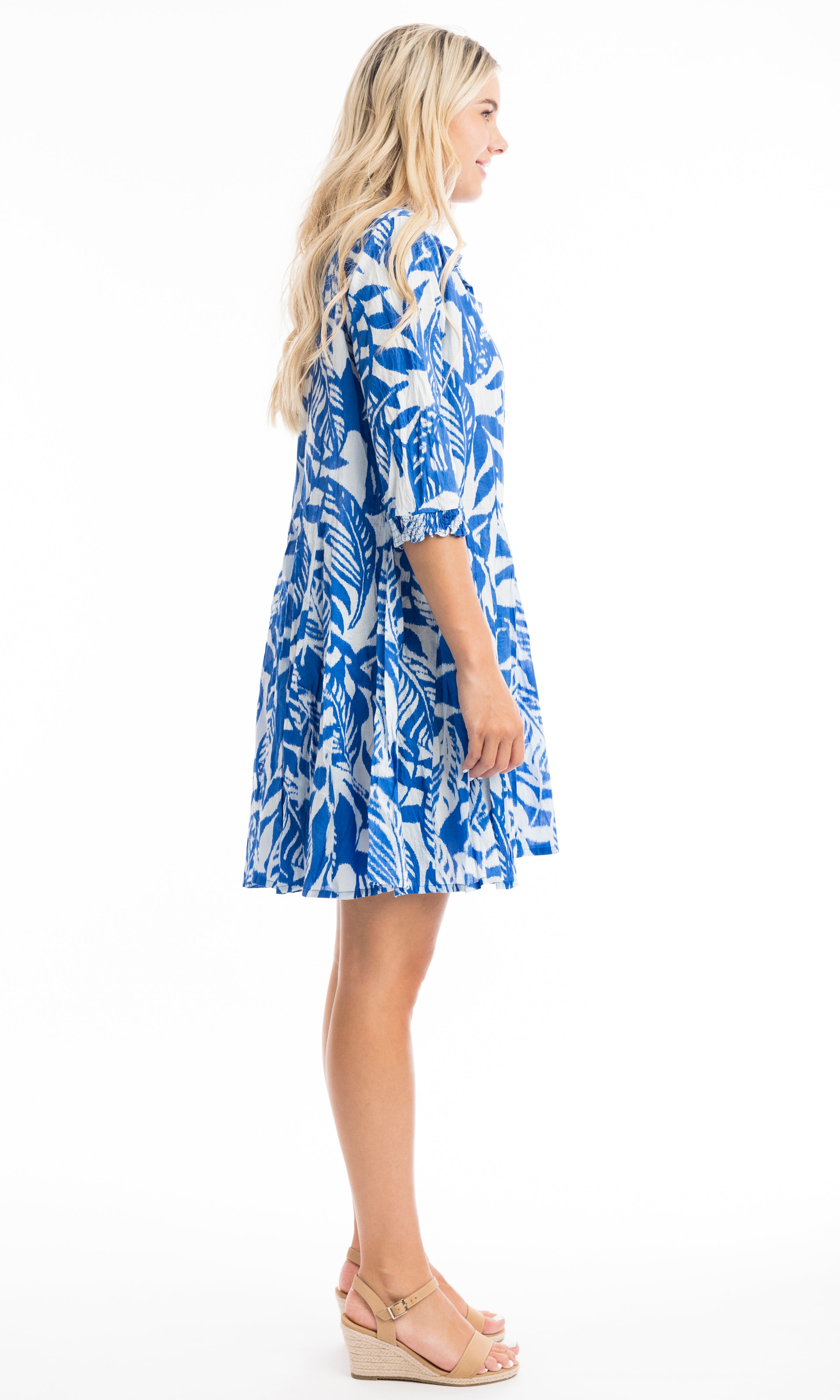Cotton Dress Collared Puff Sleeve Hayman Blue