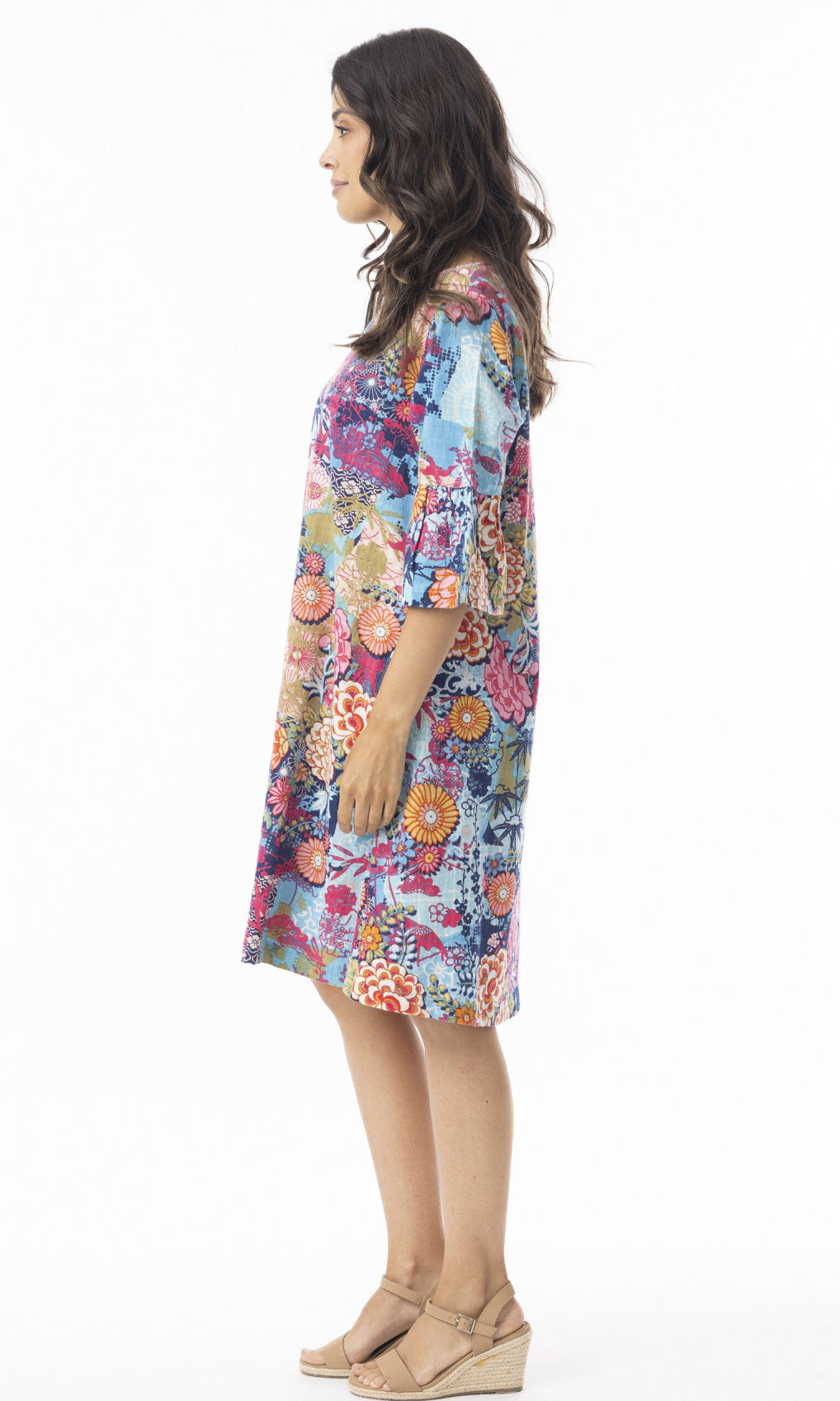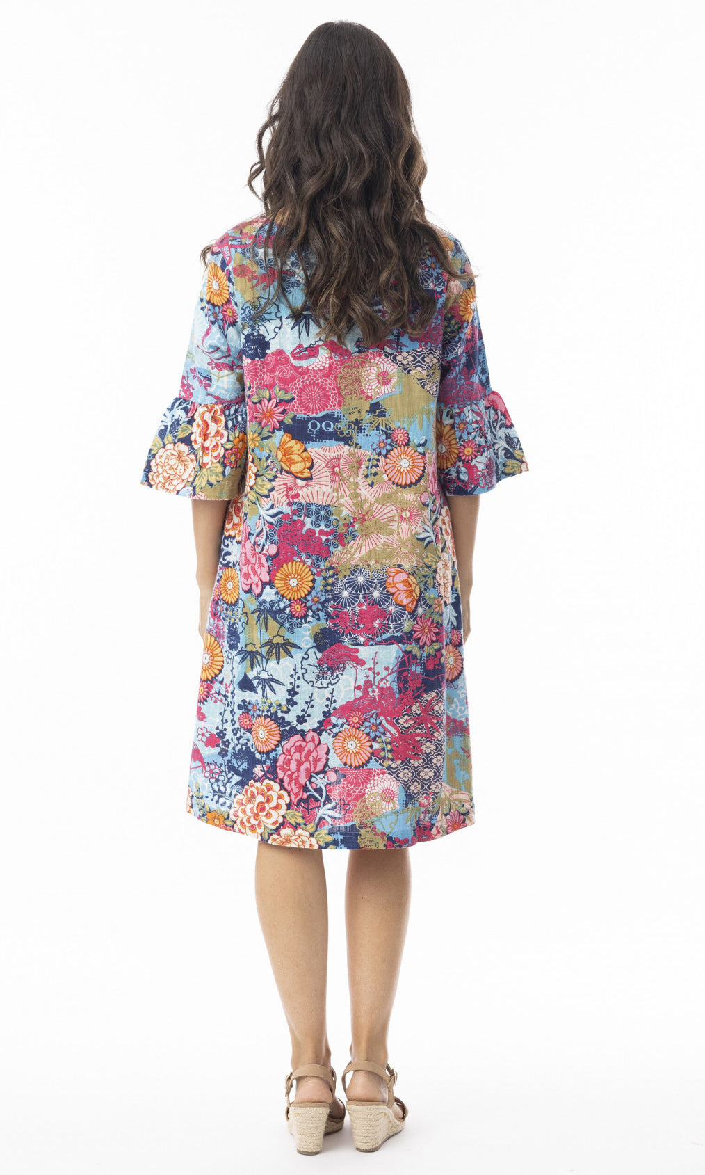 Cotton Dress Contemporary Frill Sleeve Ikebana