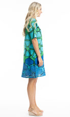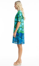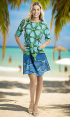 Add a pop of colour to your look with our stunning Whitsundays contemporary dress. Featuring a colourful, eye-catching pattern, this dress boasts a relaxed fit with half sleeves and a flattering knee-length hem. Made from lightweight, breathable fabric, it's perfect for warm weather. The round neckline and convenient side pockets add functional elegance, making it ideal for both casual outings and beach holidays.