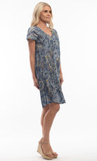 Created exclusively for Orientique by artists in Europe. Classic paisley motifs in this intricate print mix in two evergreen colours denim blues & black!