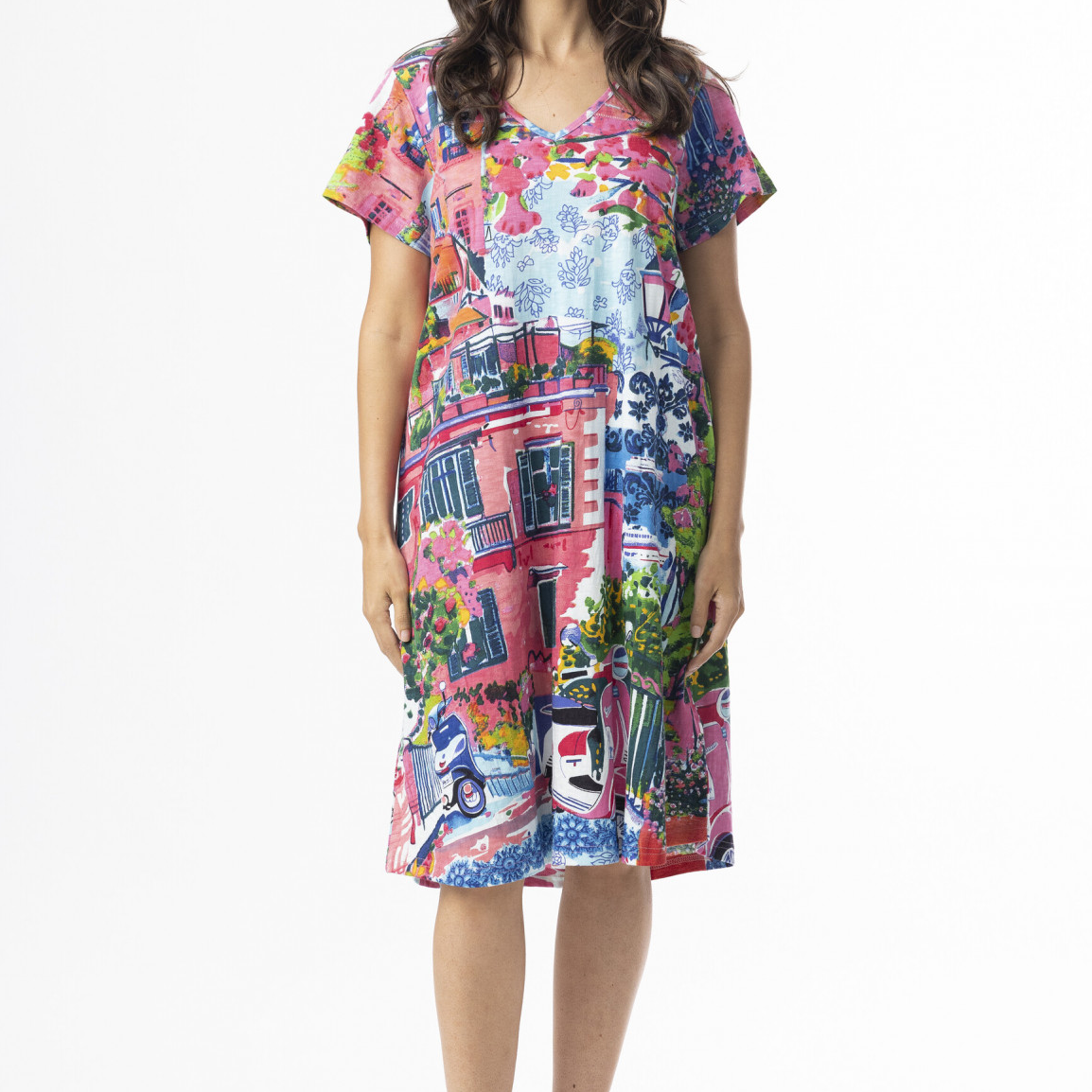 Welcome summer in our Oasis easy fit dress. Featuring a flattering v-neckline, chic pleats at the bust, and short sleeves, this piece offers a stylish solution for any occasion. Your new go-to summer dress!