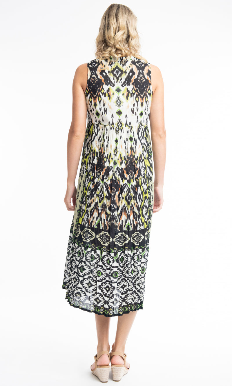 Crinkle Cotton Dress Boho Sleeveless Izmir Green