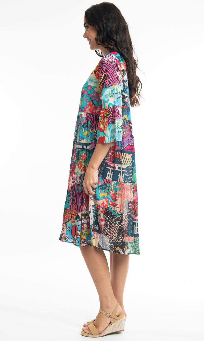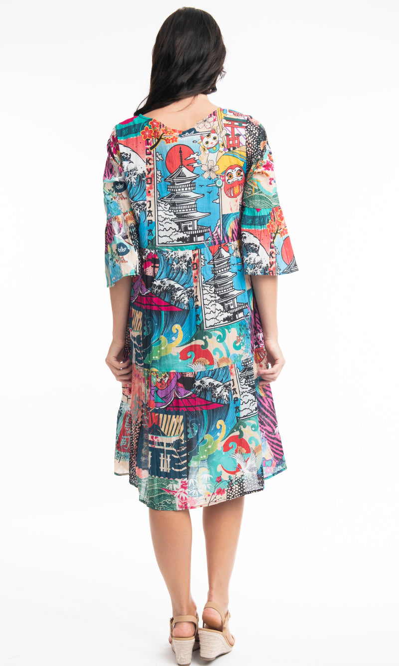 Cotton Dress Layers V Neck Onikawa