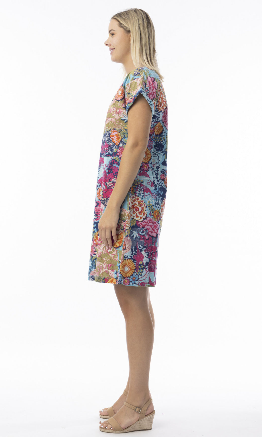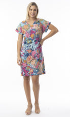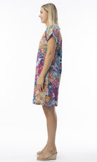 Soak up the sun in style with our vibrant Ikebana shift dress! Featuring a comfortable crew neckline, cap sleeves, and a relaxed silhouette, this dress comes in vibrant colours and lively prints, ideal for beach outings or casual summer days. Embrace effortless style and gorgeous prints with this stunning piece!