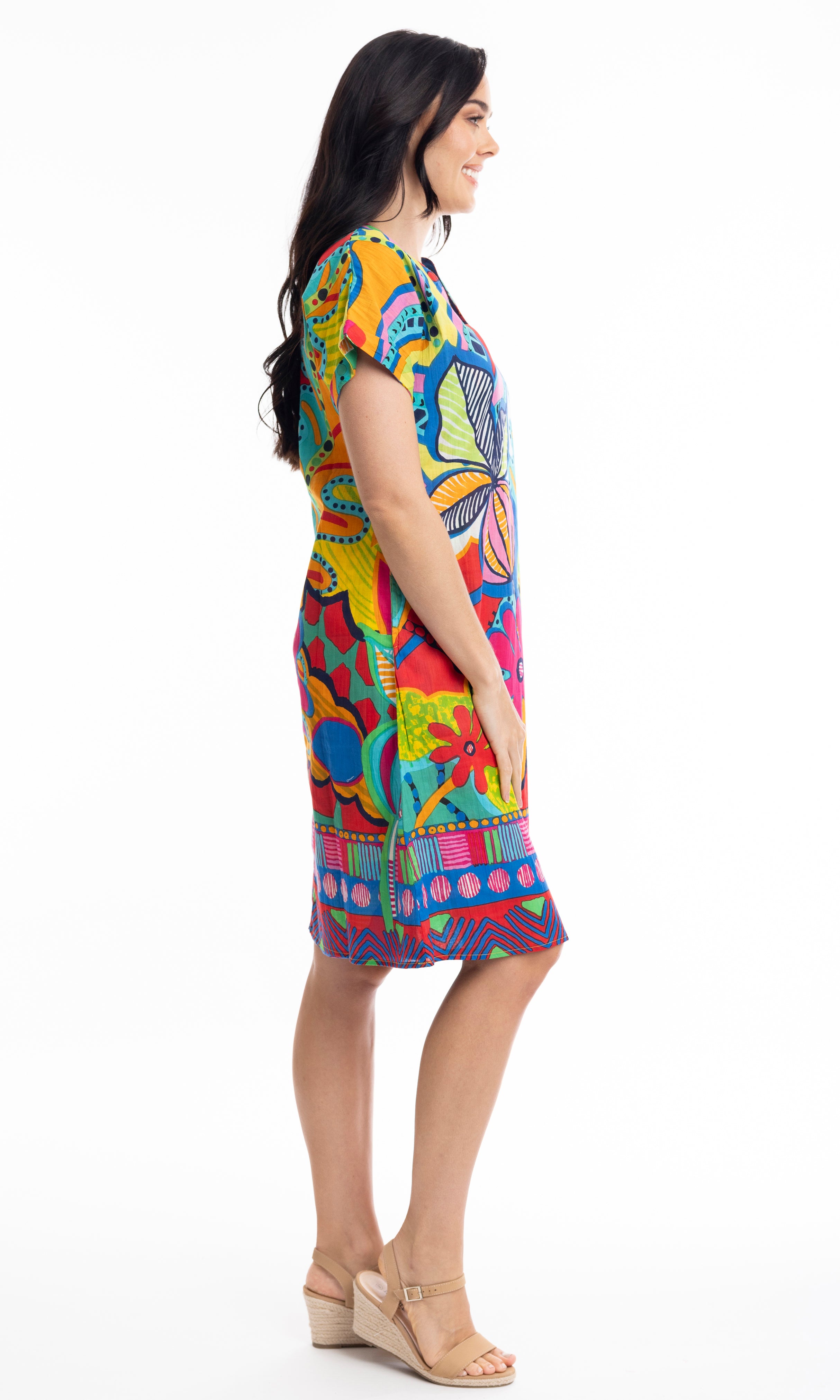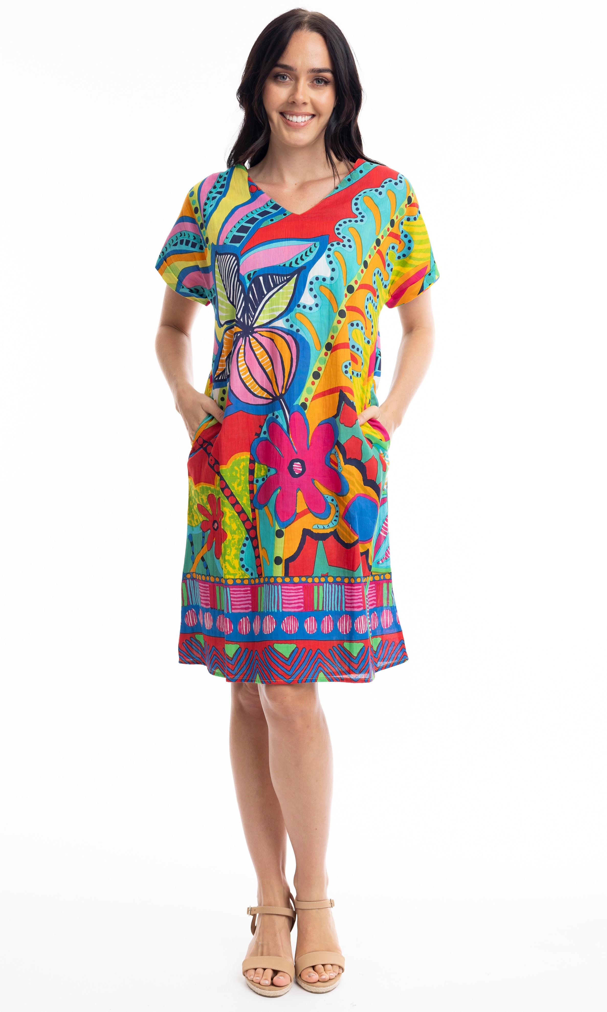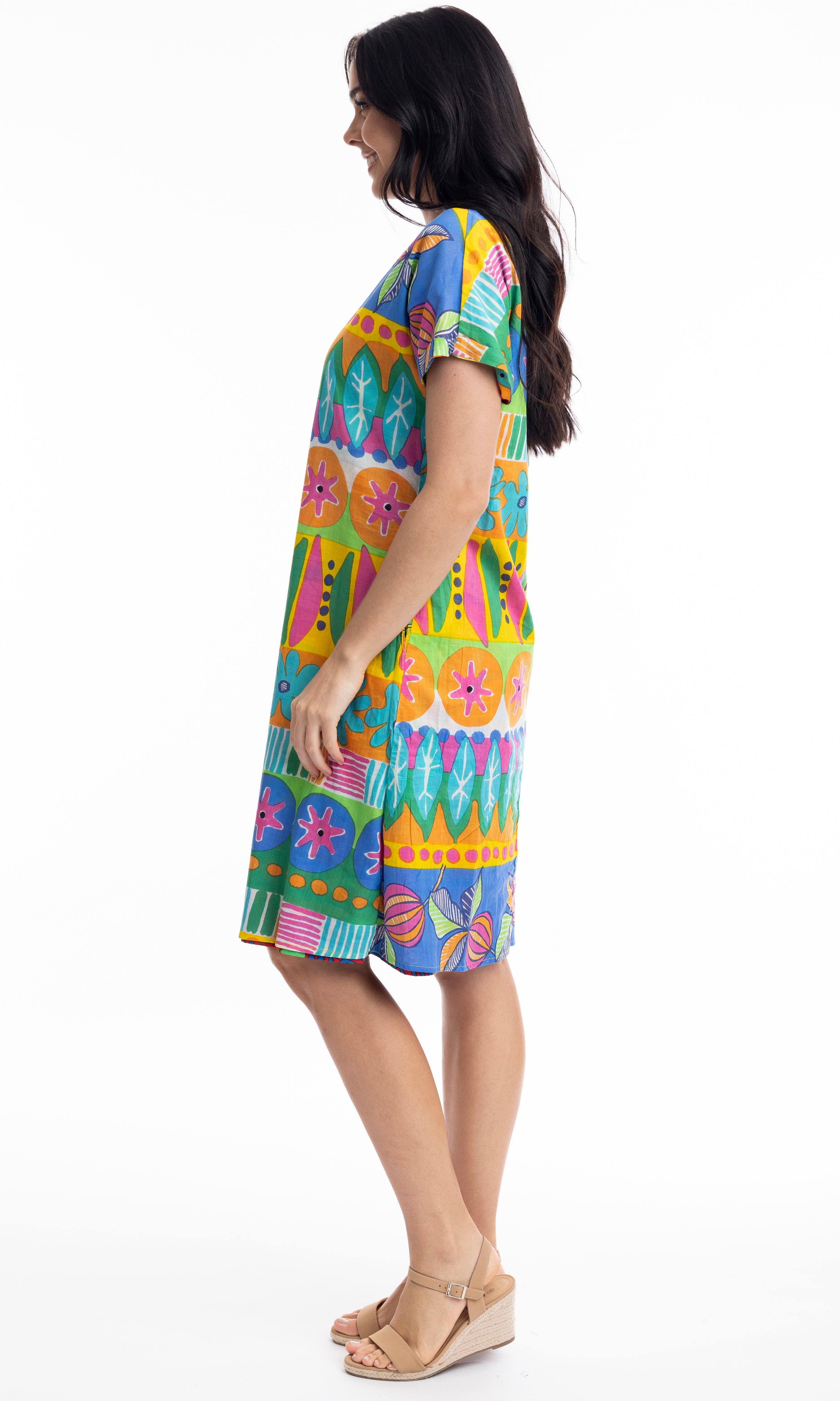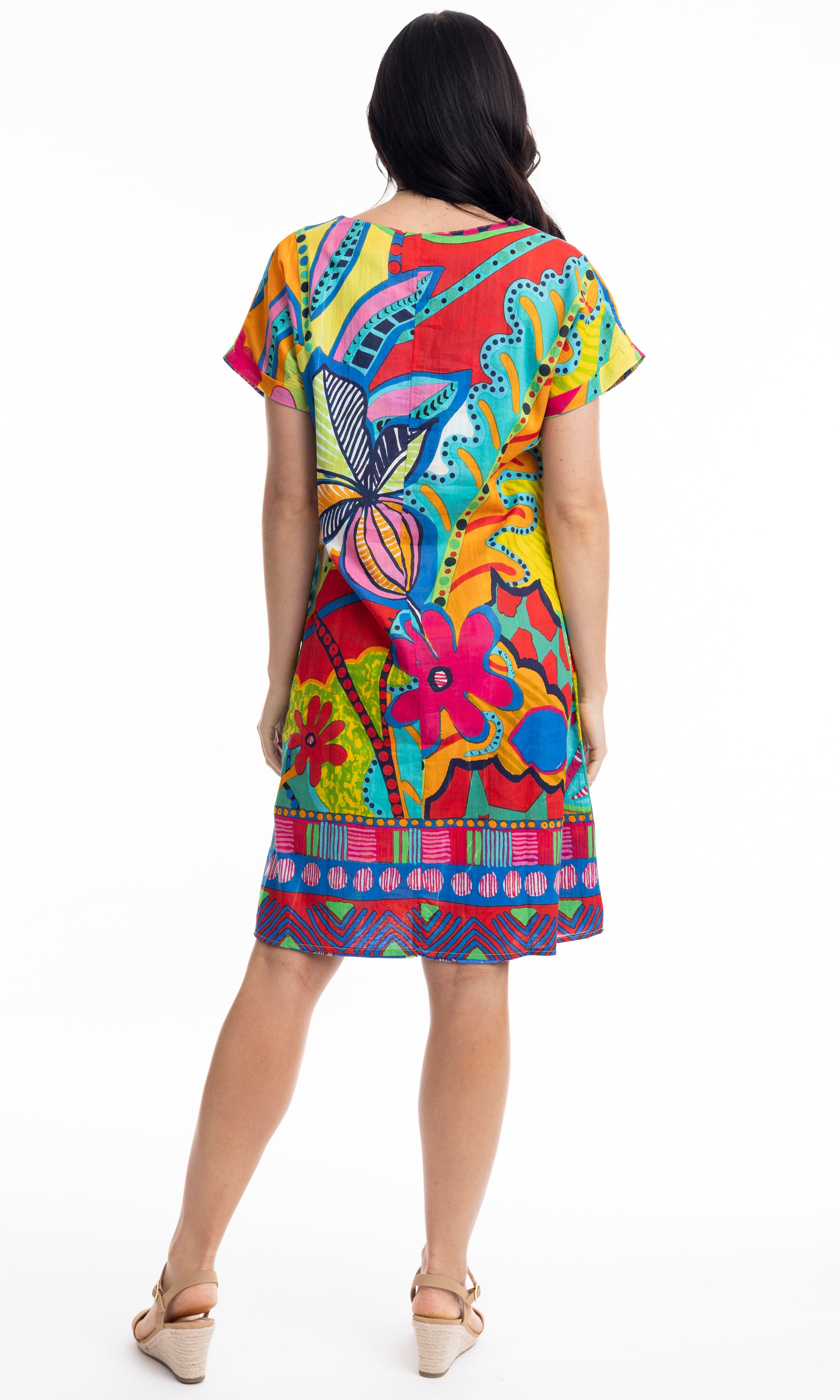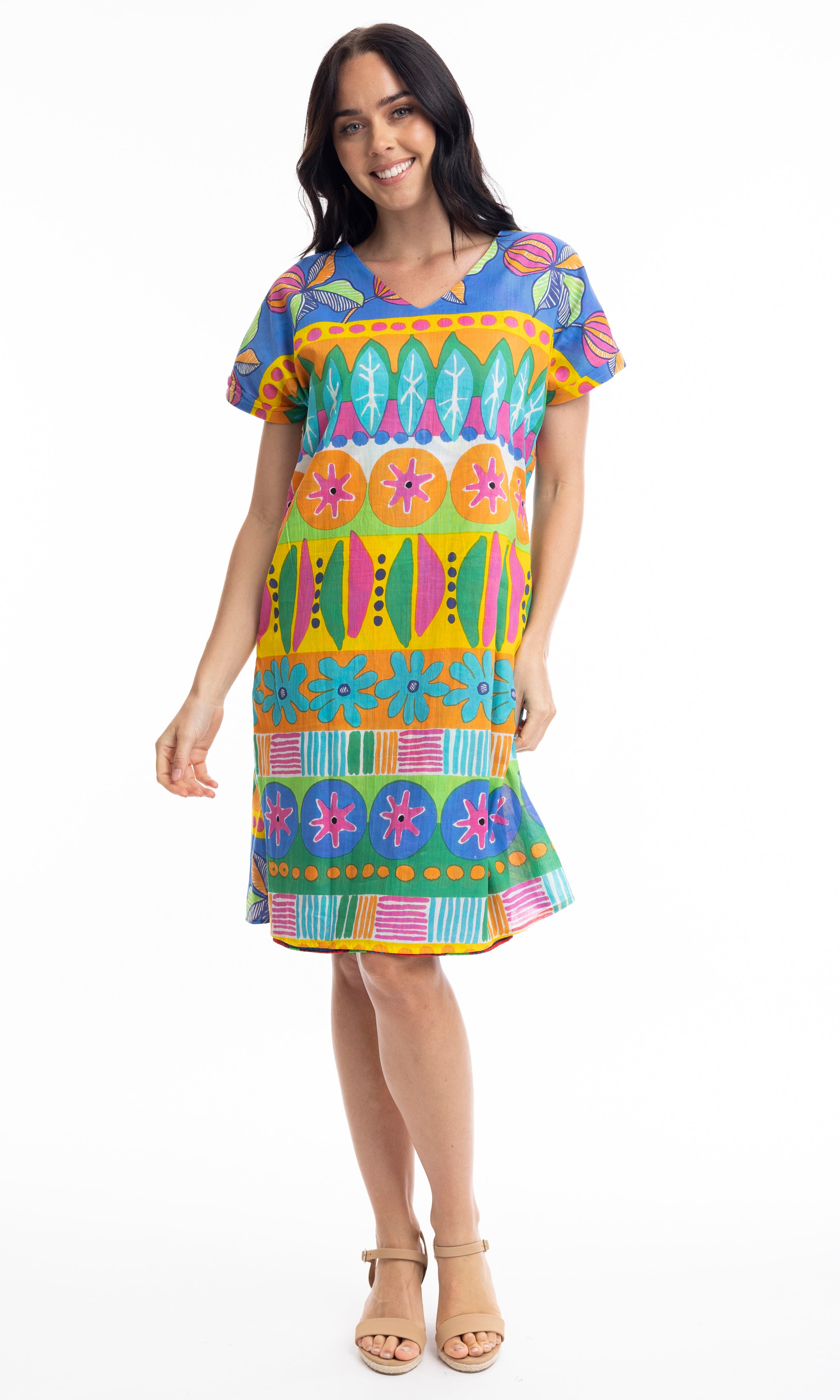 Cotton Dress Reversible Short Sleeve V Neck San Miguel