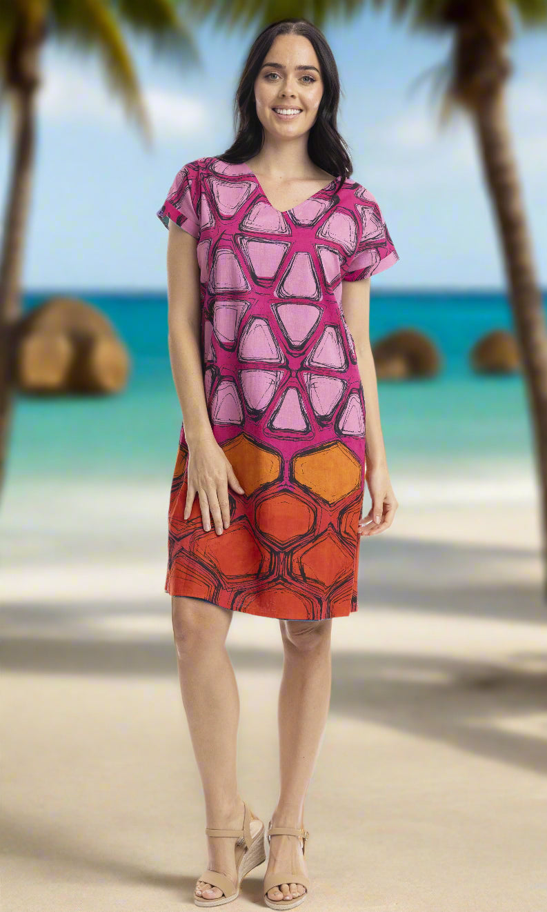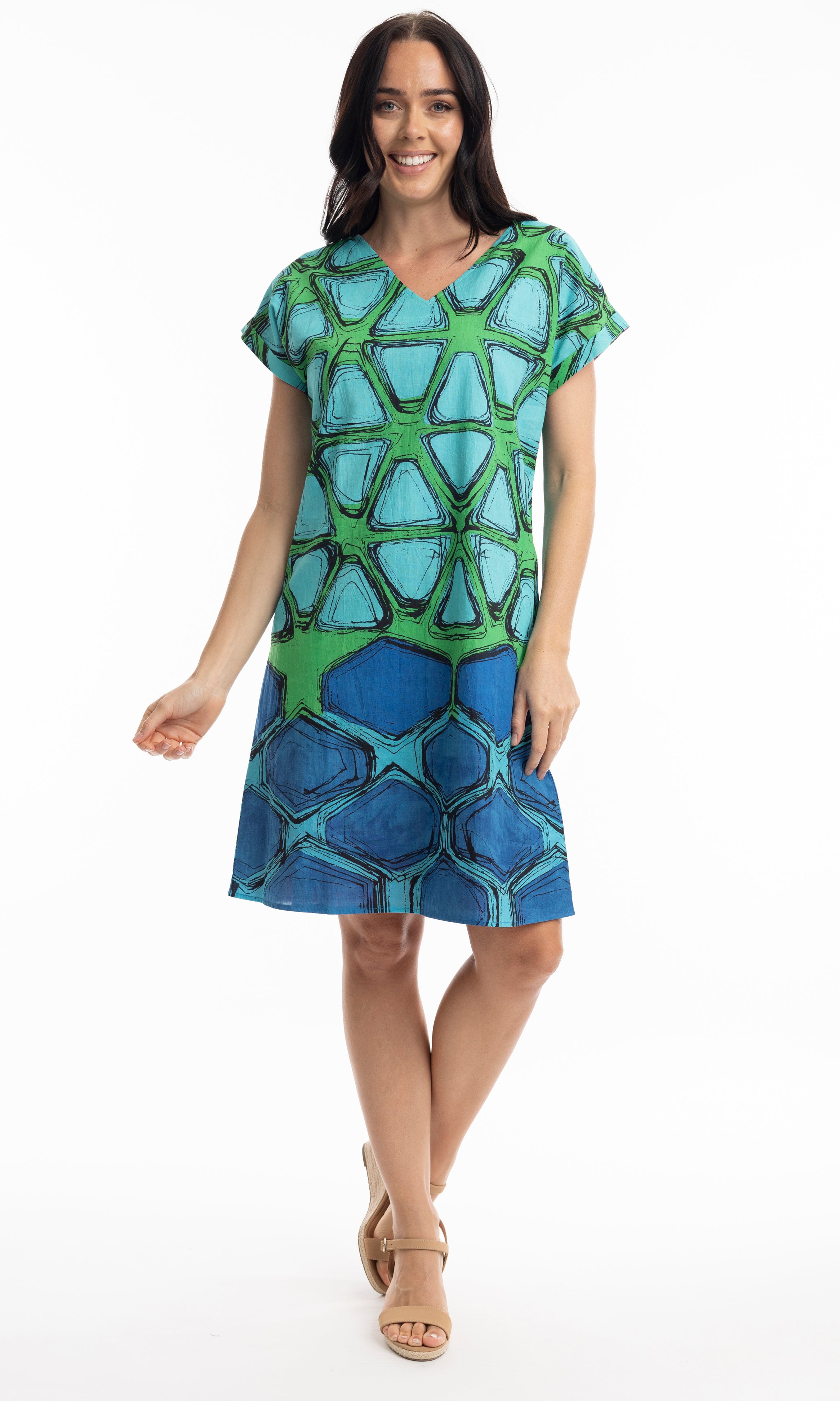 Cotton Dress Reversible Short Sleeve V Neck Whitsundays