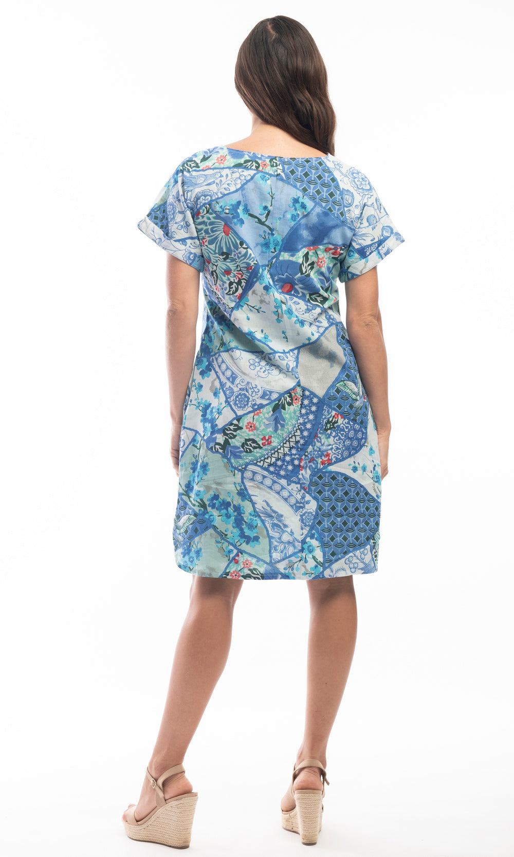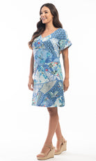 Cotton Dress Reversible Short Sleeve V Neck Kintsugi