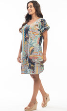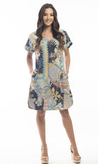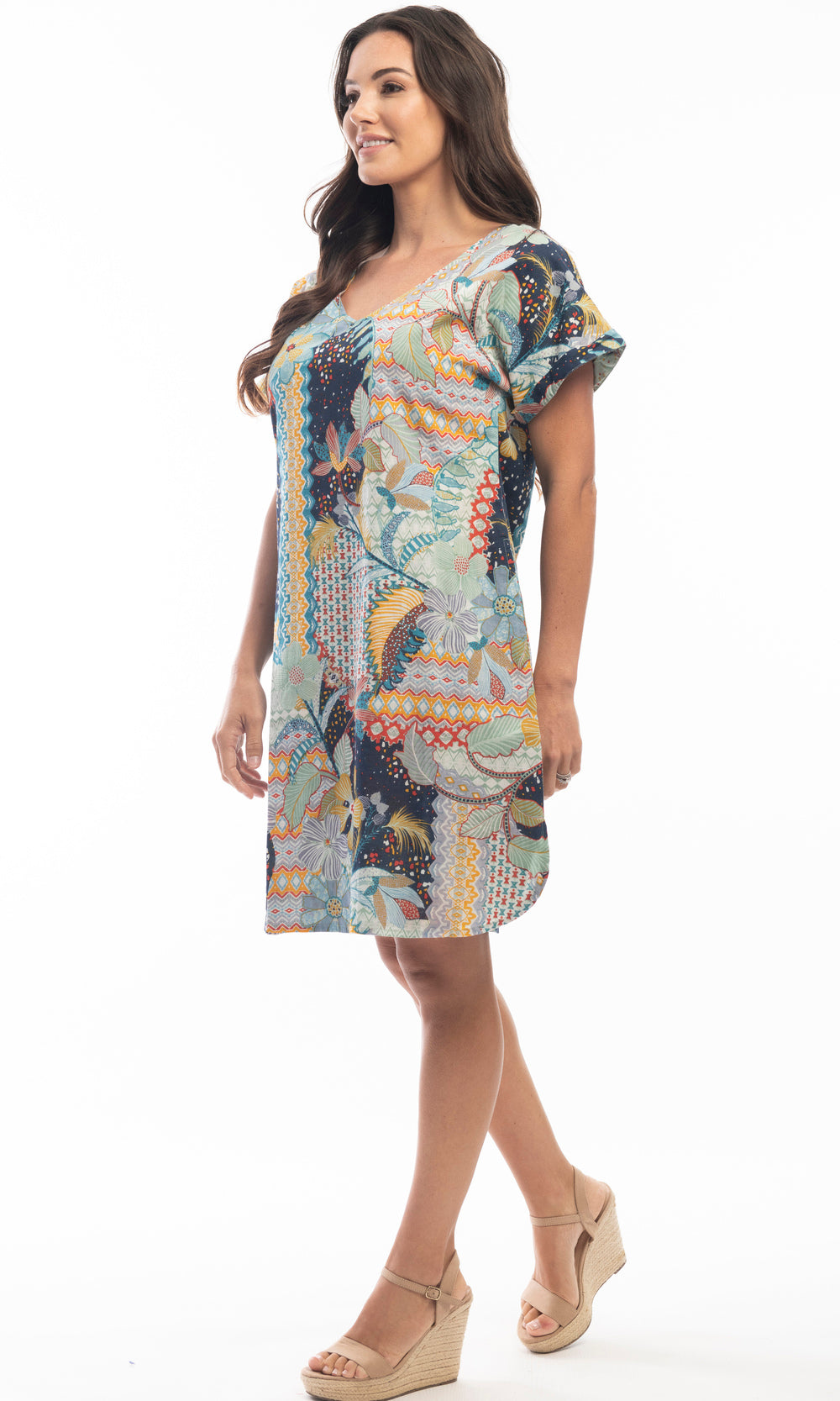Cotton Dress Reversible Short Sleeve V Neck Lisbon