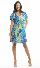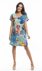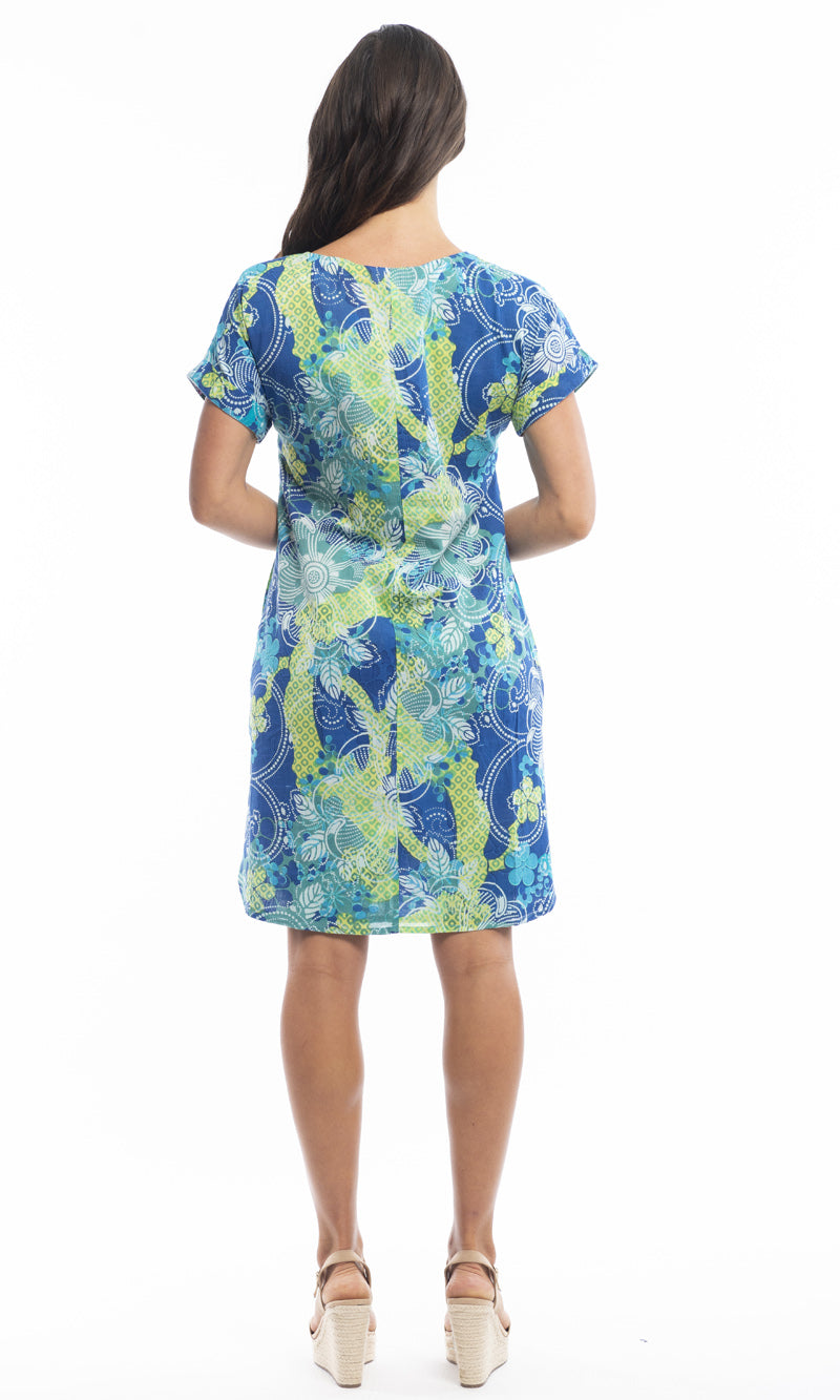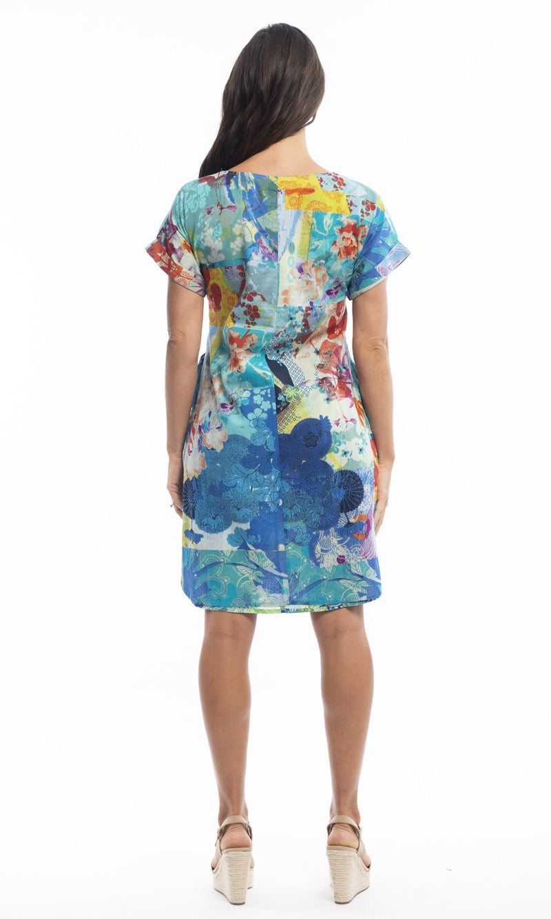 Cotton Dress Shift Sleeve Reversible Menton