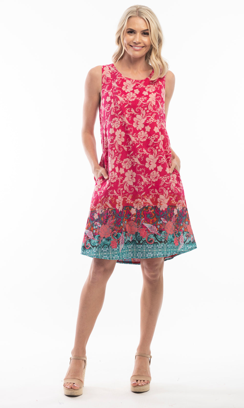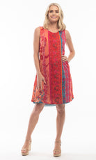 Cotton Dress Shift Sleeveless Reversible Harajuku Red