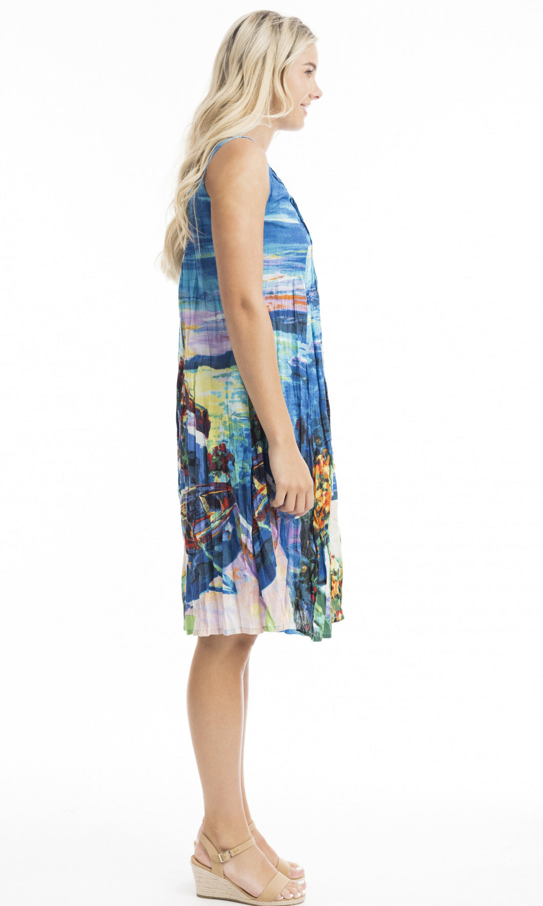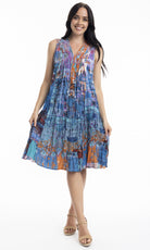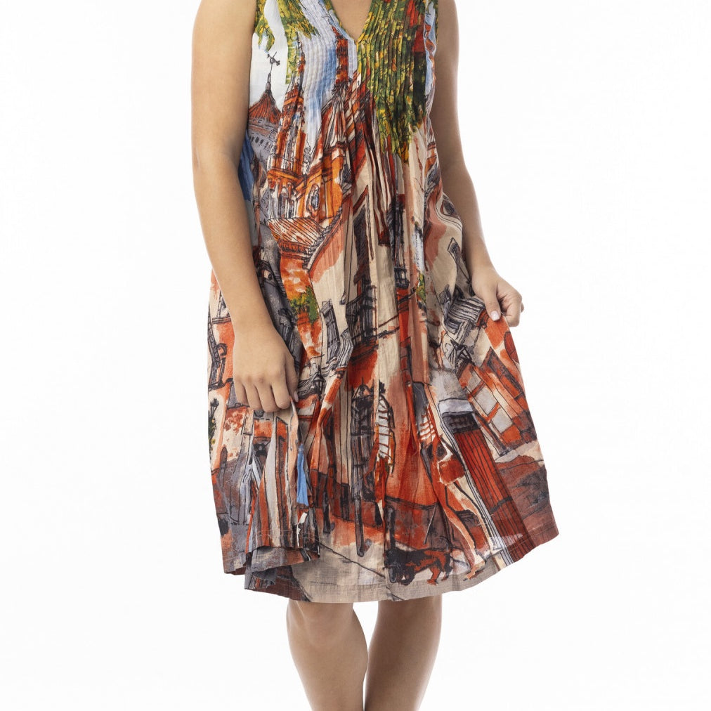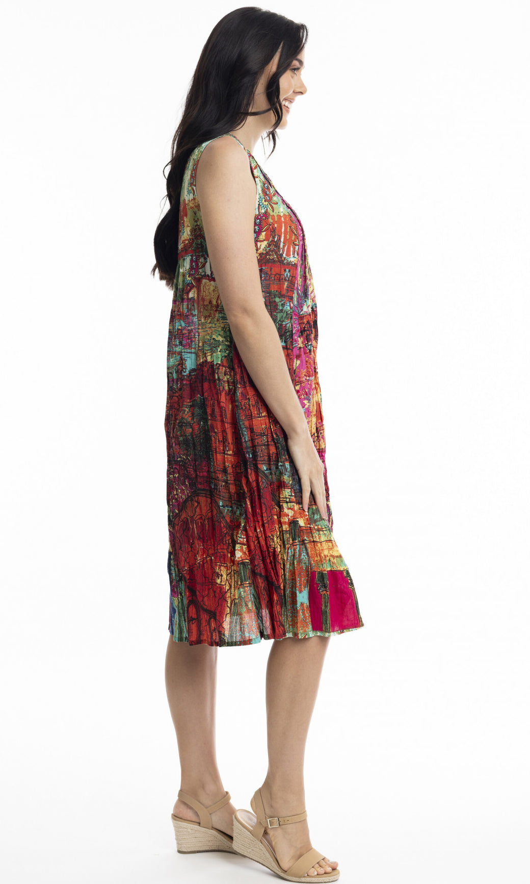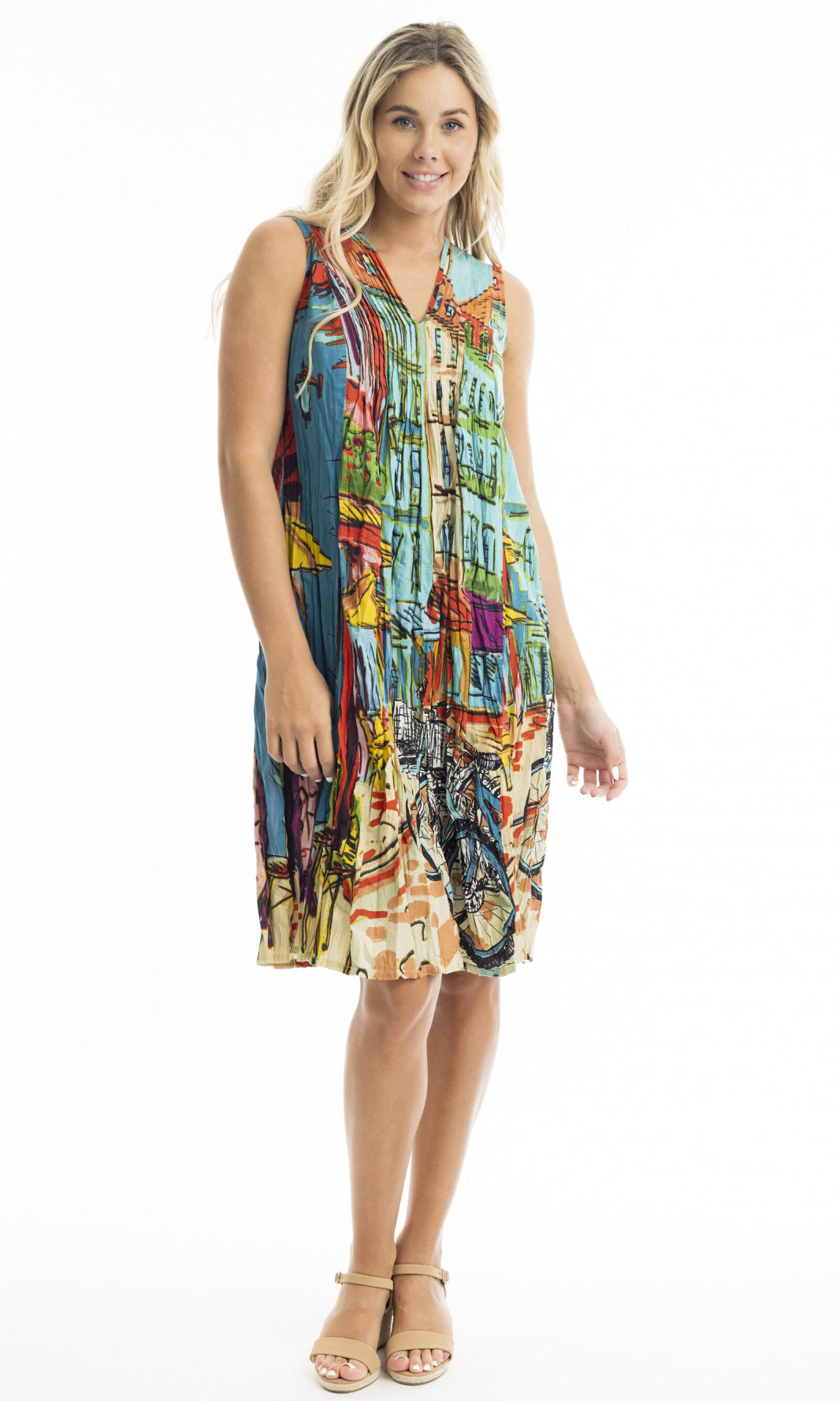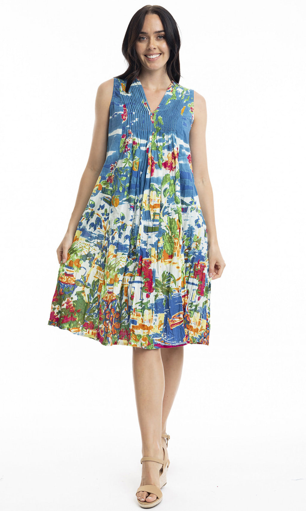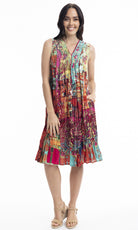 Crinkle Cotton Dress V Neck Pleated, More Prints