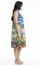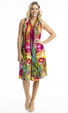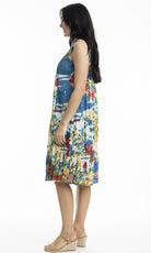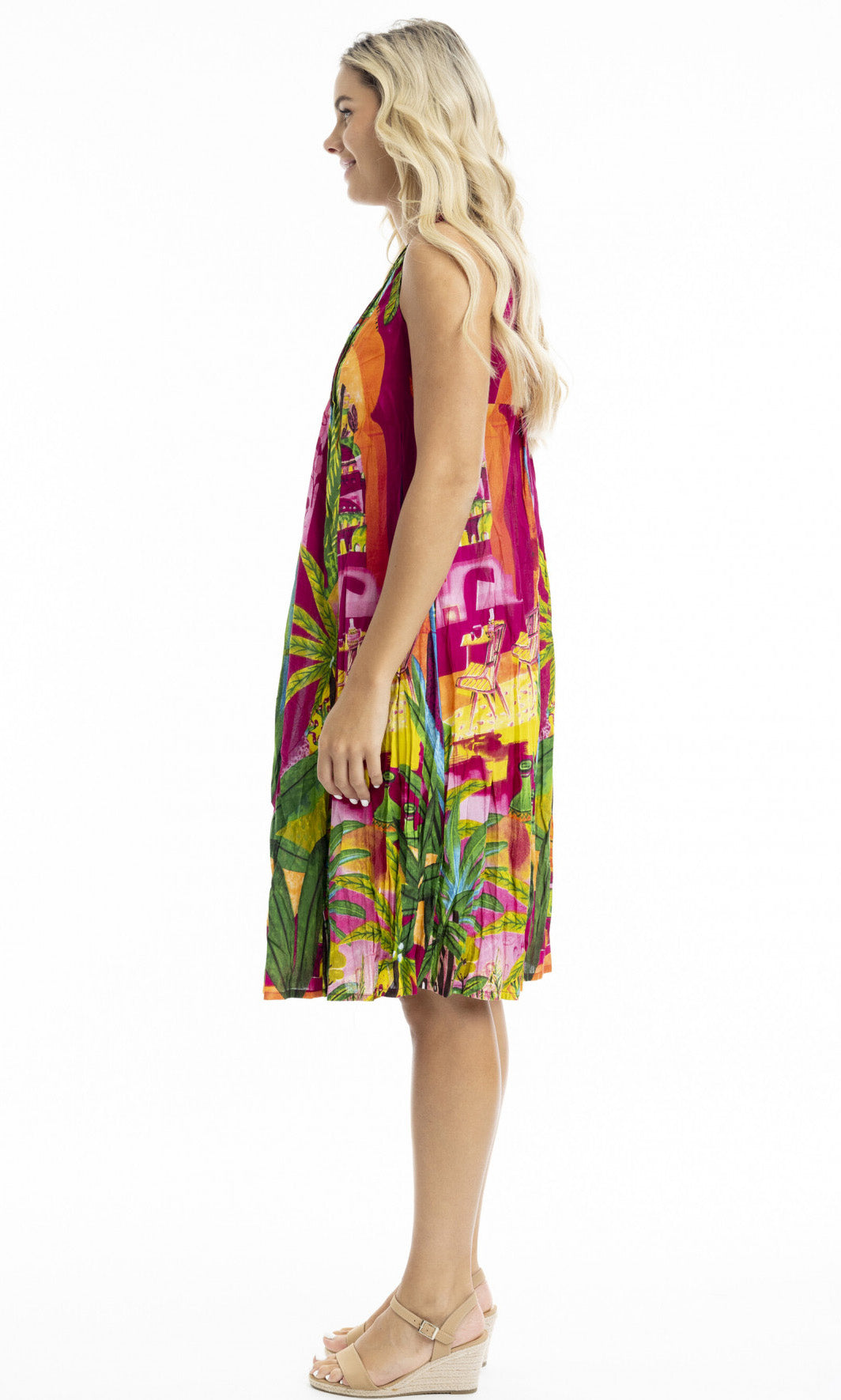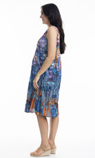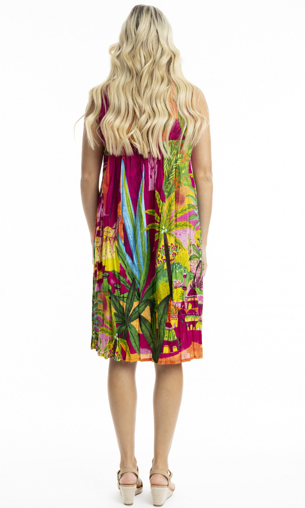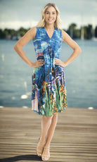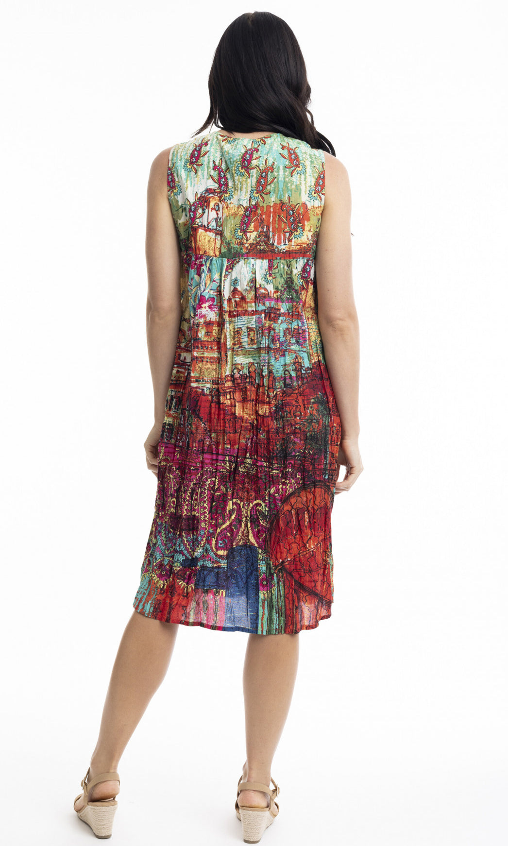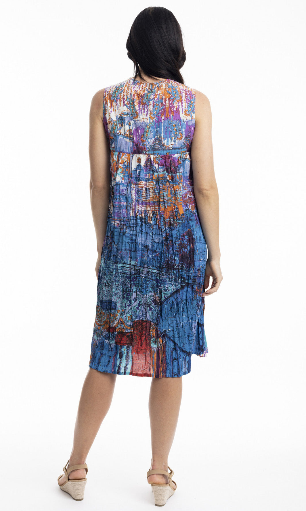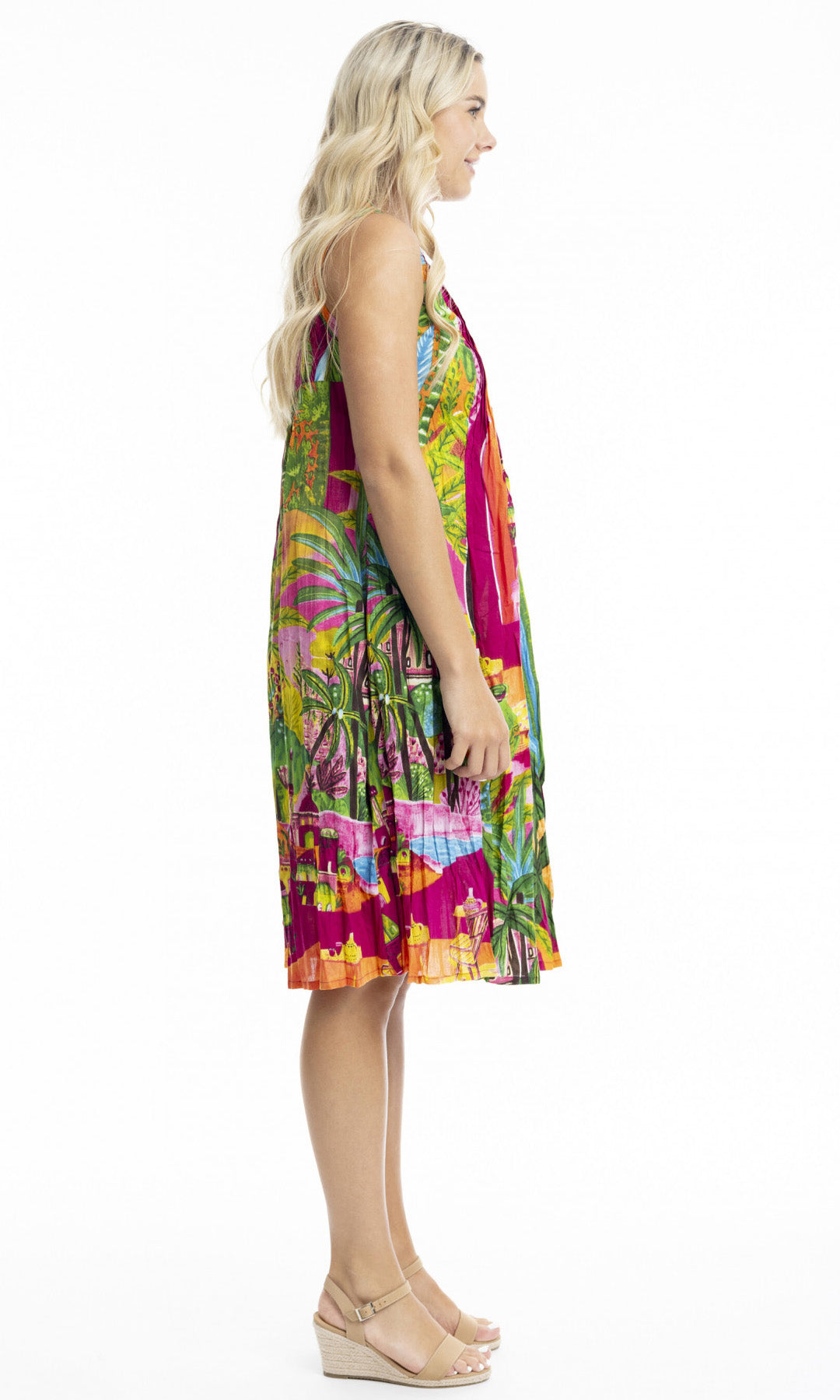 Crinkle Cotton Dress V Neck Pleated, More Prints