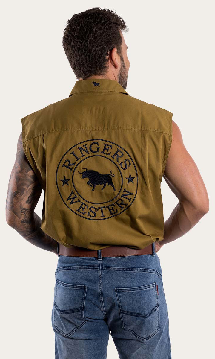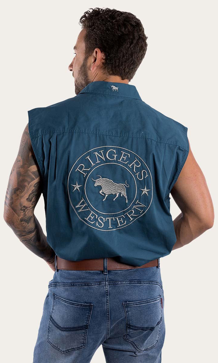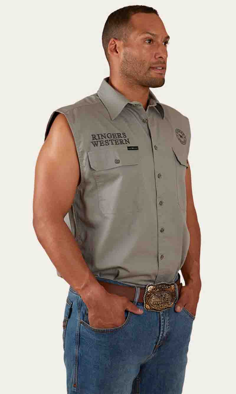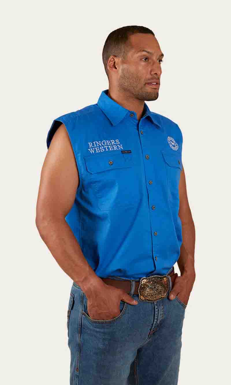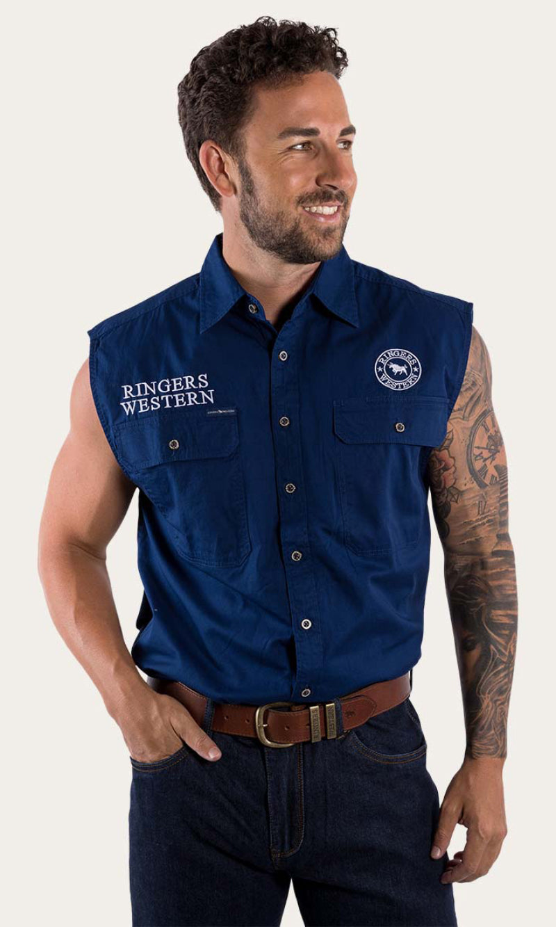 This sleeveless work shirt acknowledges our roots with a signature crest, white embroidery, and Ringers Western appliqué on the chest.