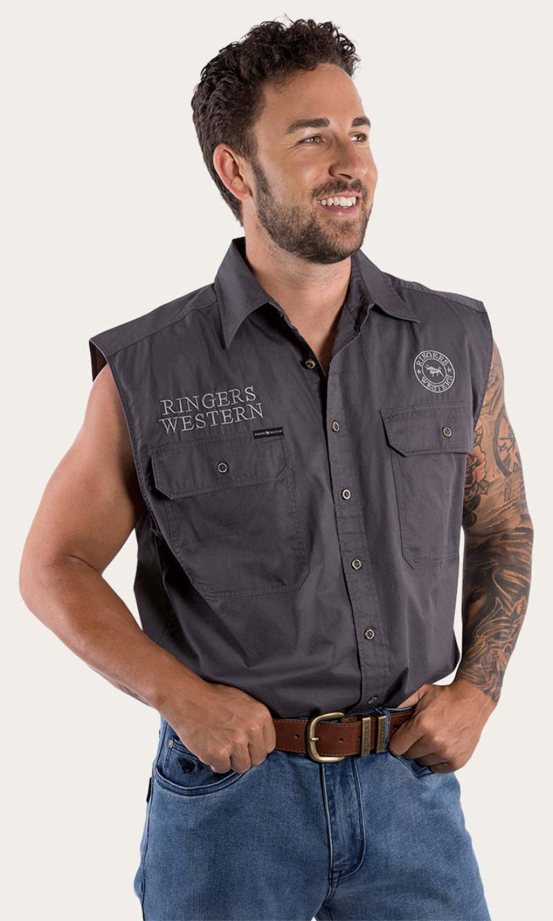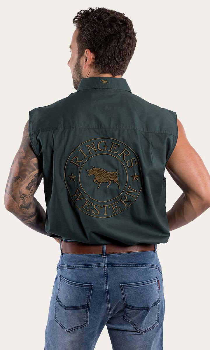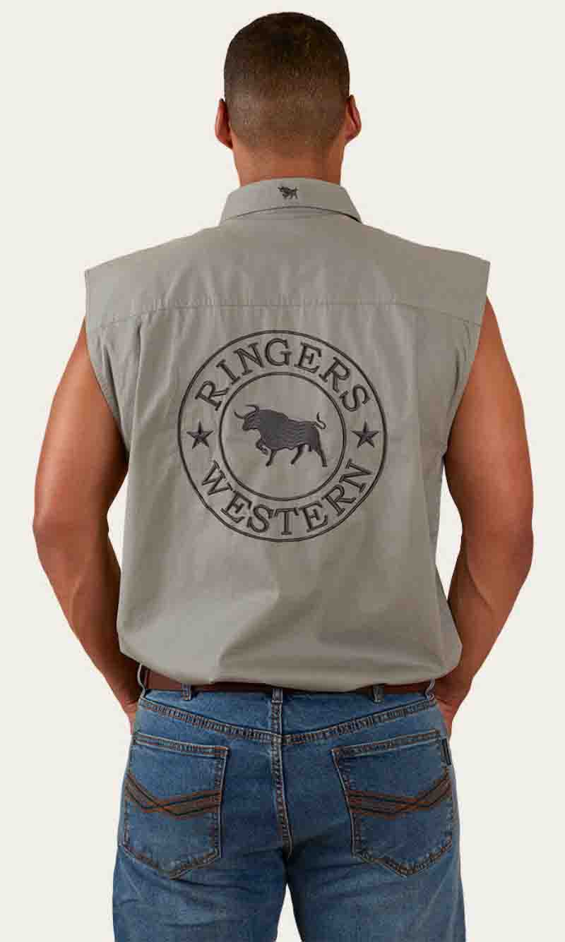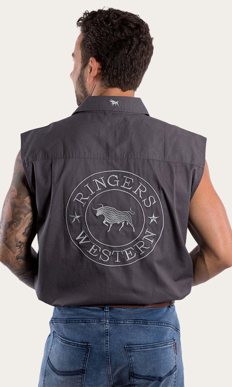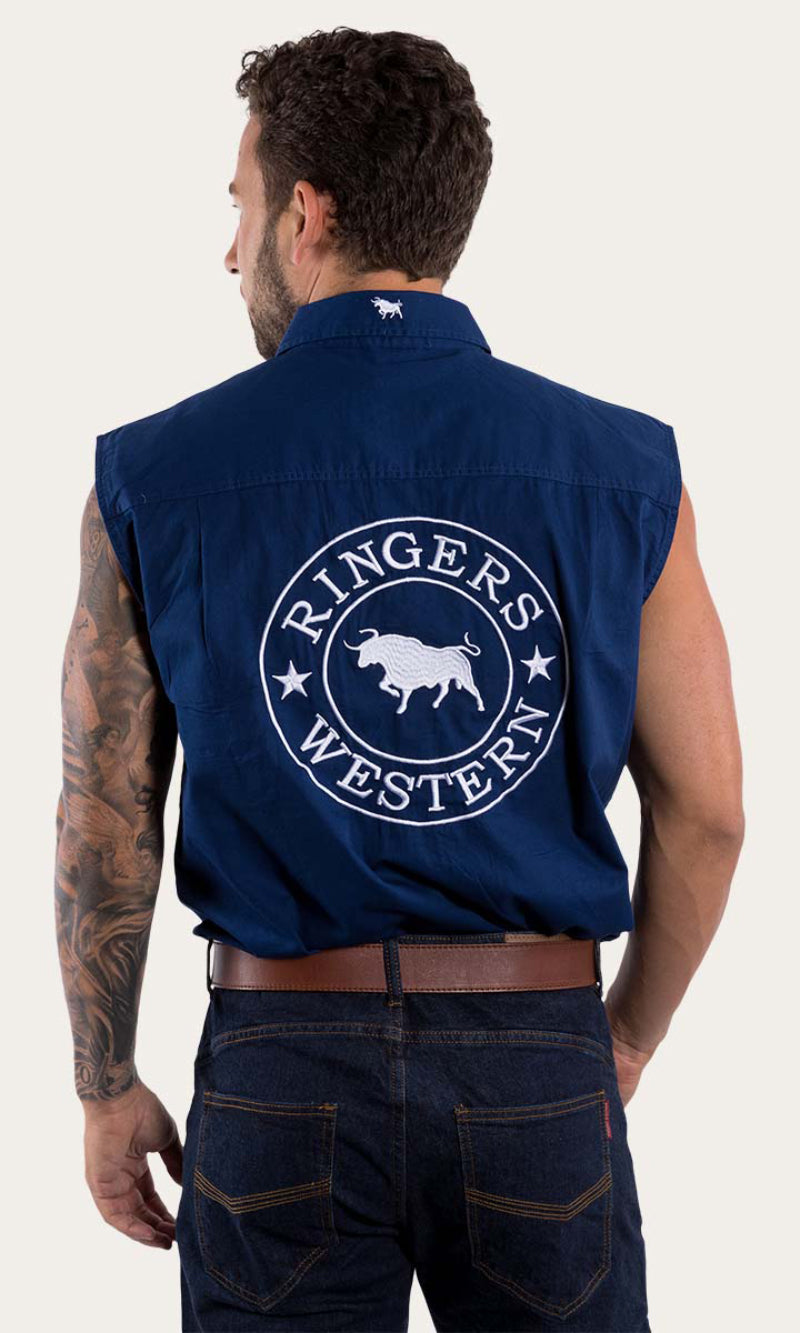 This sleeveless work shirt acknowledges our roots with a signature crest, white embroidery, and Ringers Western appliqué on the chest.